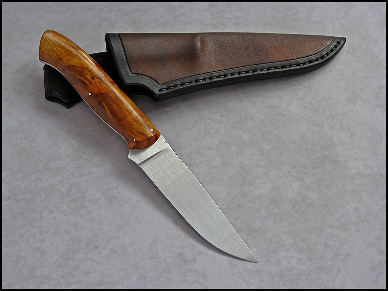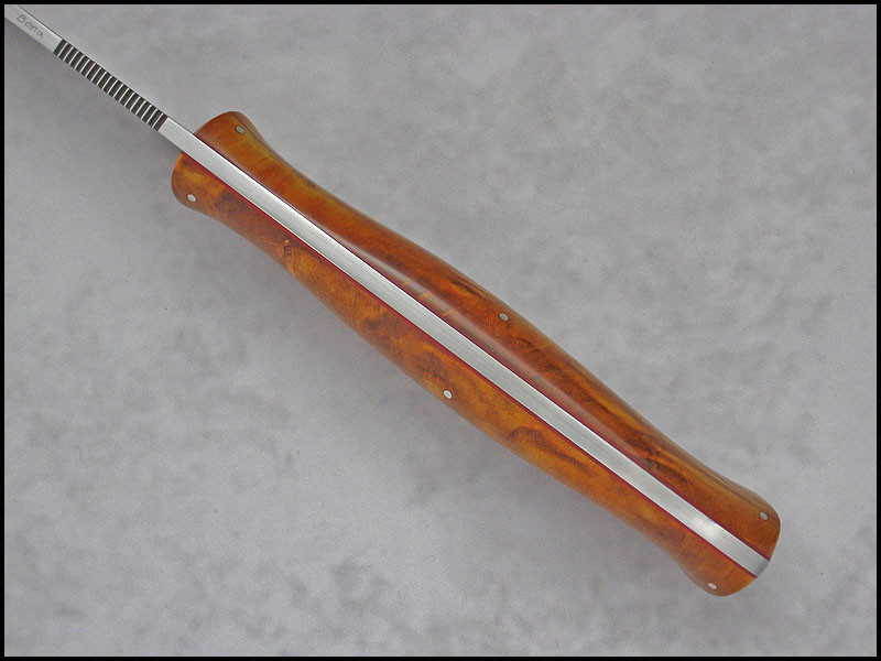 Bona The Art of Harmony Feedback: +31 / =0 / -0 Joined Apr 27, 2006 Messages 1,158 Apr 8, 2015 #1 Another Traveler for sale. steel - N690 / 3.1 mm [0.122"] length - 231 mm [9.094"] blade - 110 mm [4.331"] handle - dyed and stabilized Box Elder, red linen, nickel silver sheath - leather Price - $250 plus $11 for International Priority Mail SOLD Last edited: Apr 8, 2015