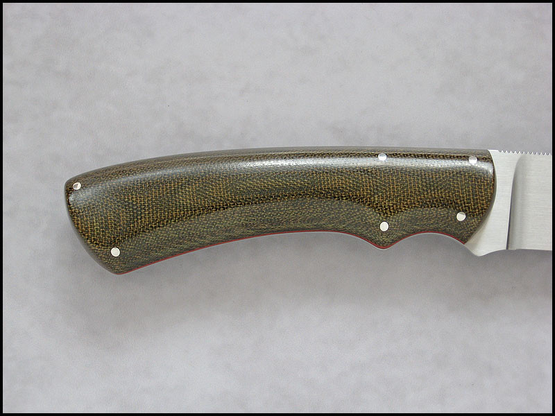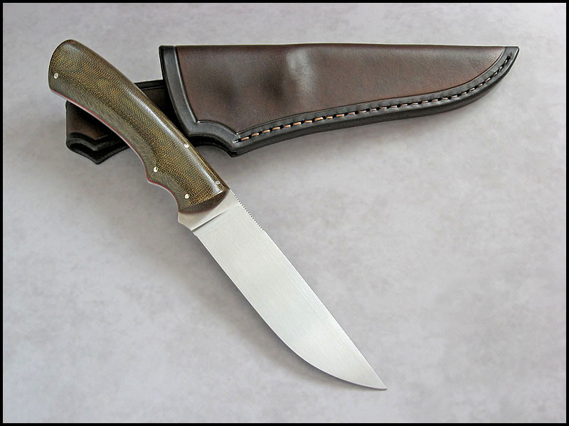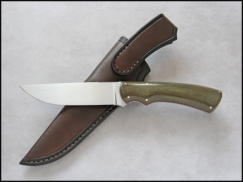 Traveler for sale. steel - N690 / 3.5 mm [0.138"] length - 246 mm [9.685"] blade - 122 mm [4.803"] handle - olive canvas, red fiber, nickel silver sheath - leather Price - $222 SOLD Included International Priority Mail