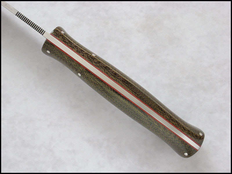 Bona The Art of Harmony Feedback: +31 / =0 / -0 Joined Apr 27, 2006 Messages 1,158 Sep 1, 2016 #1 Traveler for sale. steel - N690 / 3.5 mm [0.138"] length - 246 mm [9.685"] blade - 122 mm [4.803"] handle - olive canvas, red fiber, nickel silver sheath - leather Price - $222 SOLD Included International Priority Mail Last edited: Jan 18, 2017