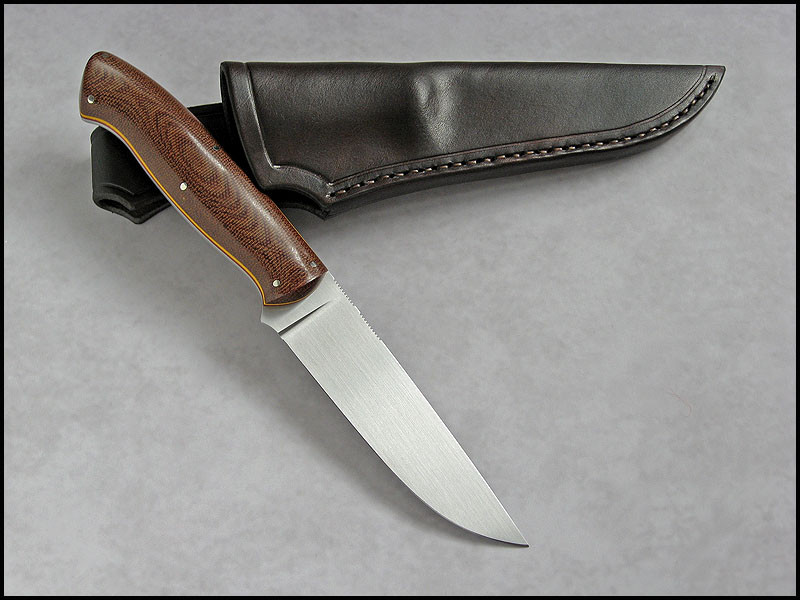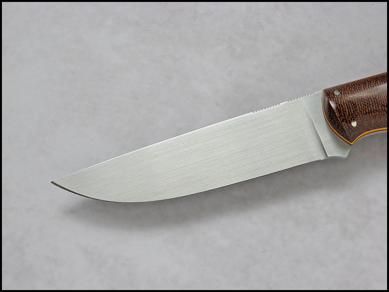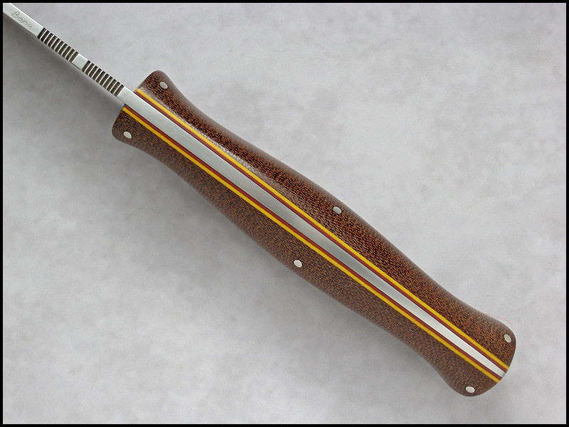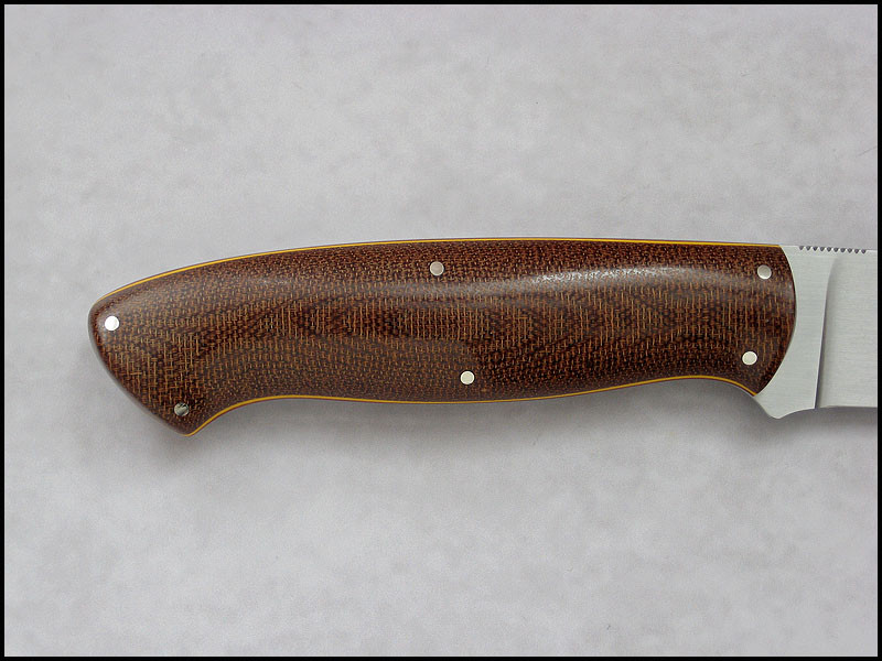 Drilled and tapered tang, nice colours and stainless steel make good companion for your trips.