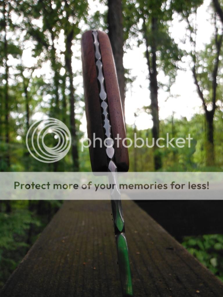 Got the blade back not too long after that. While planning on how to do the handle I figured why not try my hand at file work and etching some initials. I used nail polish as the blocker for the pcb etchant and a razor blade to scratch out the initials before etching. I wanted to leave the file work exposed so i used sculpting clay to fill in the voids before epoxying the scales on. It is by no means perfect but I am certainly pleased with how it came out. I have the utmost respect for y'all that have spent hours upon hours getting that fit and finish just right. I still have so much to learn haha. Thoughts, comments and critiques are always welcome. Thanks for looking!