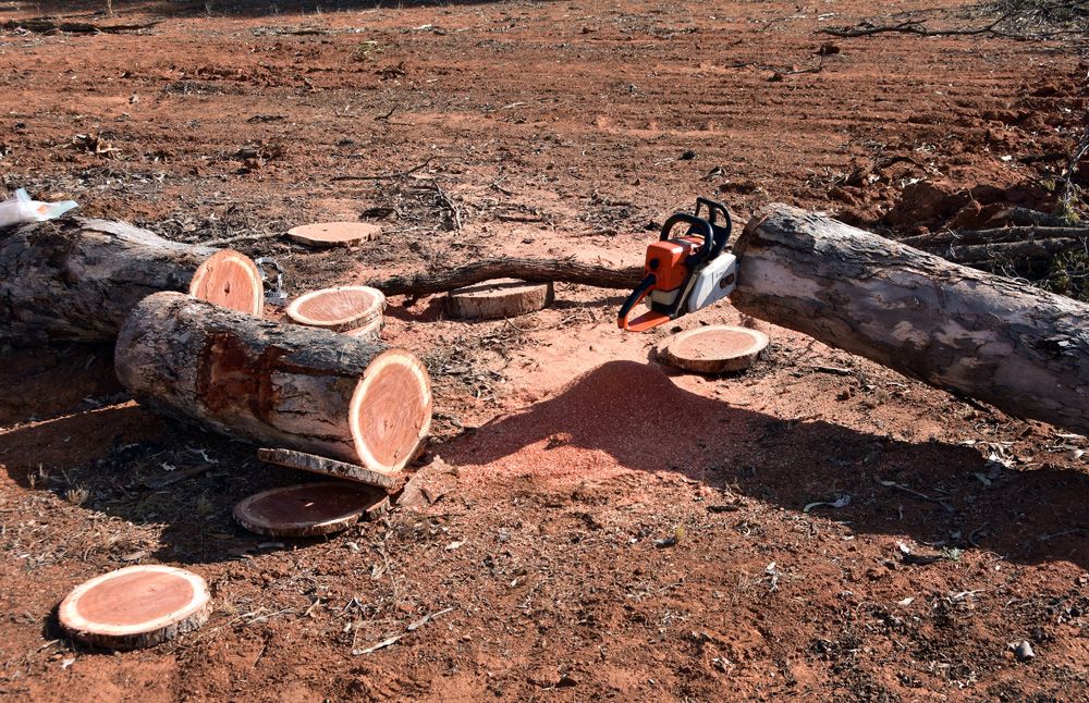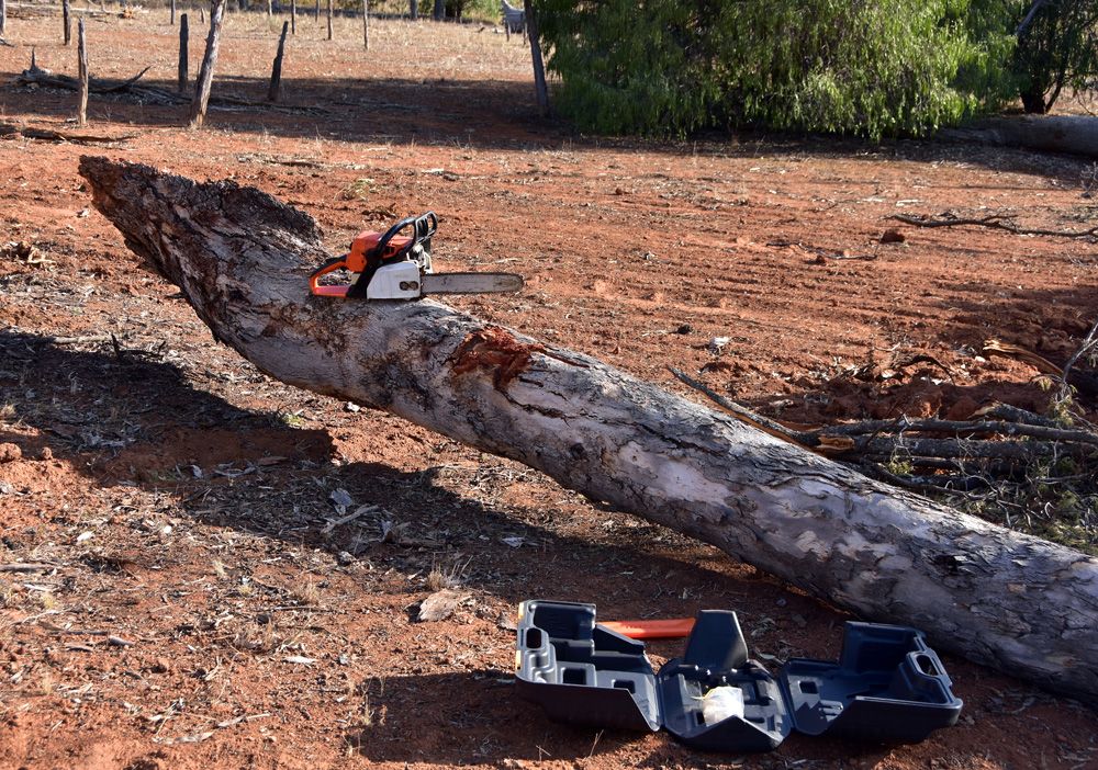 While heading in and out from the old homestead I had my eye out for a log to take some slices off as I wanted them for some Euro Mounts I want to do with some deer heads I have here at home. The owner has been fencing and cutting some fire breaks, so there were lots of downed trees about but none of the required diameter accessible (as I didn’t want to climb to the top of a pile and start waving the saw around). Then I spotted one on the far western boundary and returned with my truck and saw…..