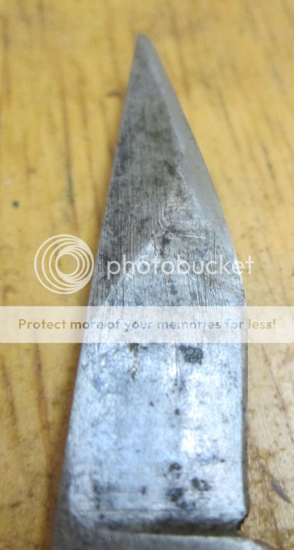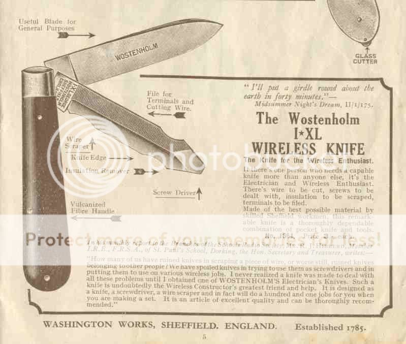 Im just throwing this in for those of you who have never heard of the wireless, and so might wonder why this odd looking electricians knife has that name. Of course this example of an Ibberson made Wireless Knife would look considerably less odd if someone hadnt broken the blade, and then set about it with a grinder. Sadly, Sheffield has always had more grinding wheels than those with the skill to use them.