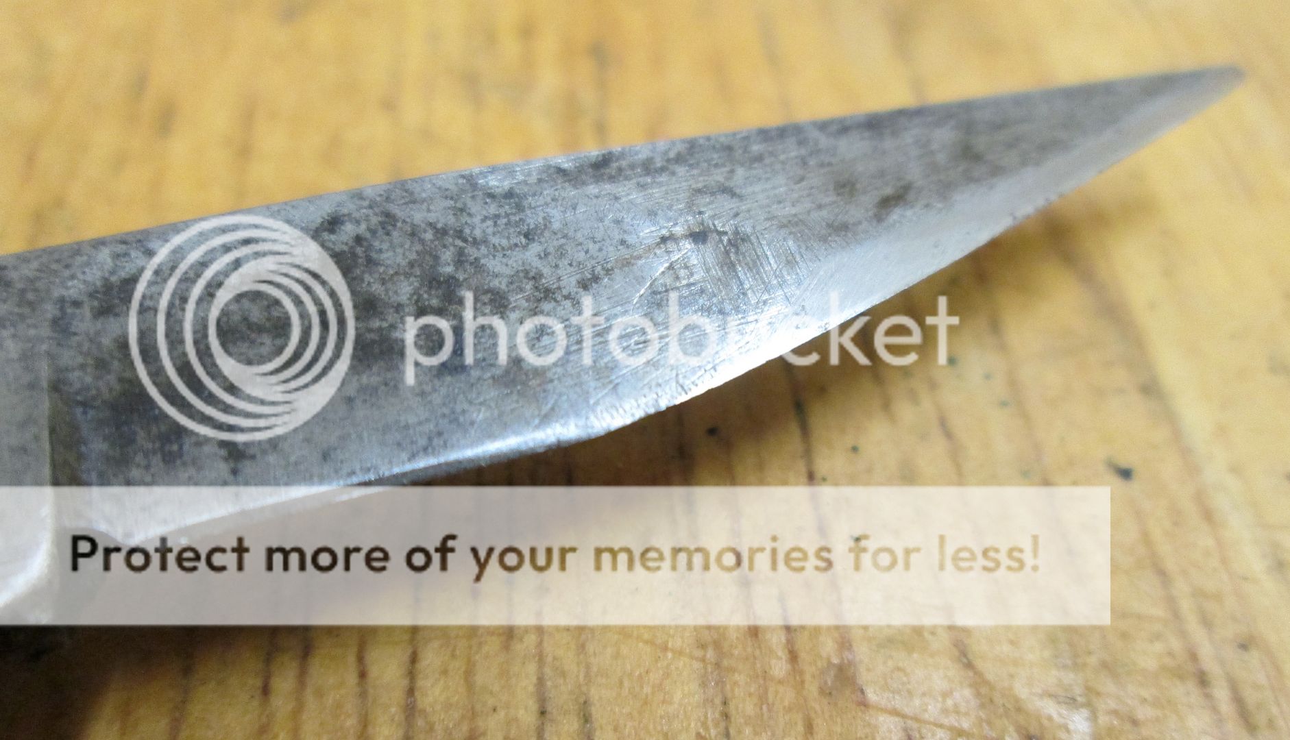 I picked up the knife from the market today when I went to visit ADEE, and Ive spent quite a bit of time wondering what on earth happened to it, what it would take to seriously damage such a sturdy and robust blade, and why whoever put it to the grinder had to thin the blade out so much that the nail nick was lost.