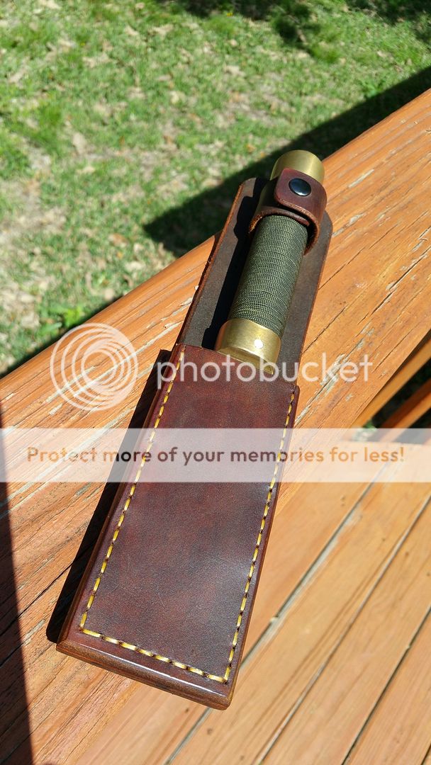 Putting my beloved Turley up for grabs. This is a one off hollow handle prototype. Houses water treatment and ferro rod in the handle. The blade is from the Gasconade, 4" 01 Steel, 1/4" thick with varied convex grind. Sheath is also a one off by Badgerclaw. Knife is in great condition and shaving sharp. Asking $OLD shipped. No trades please.