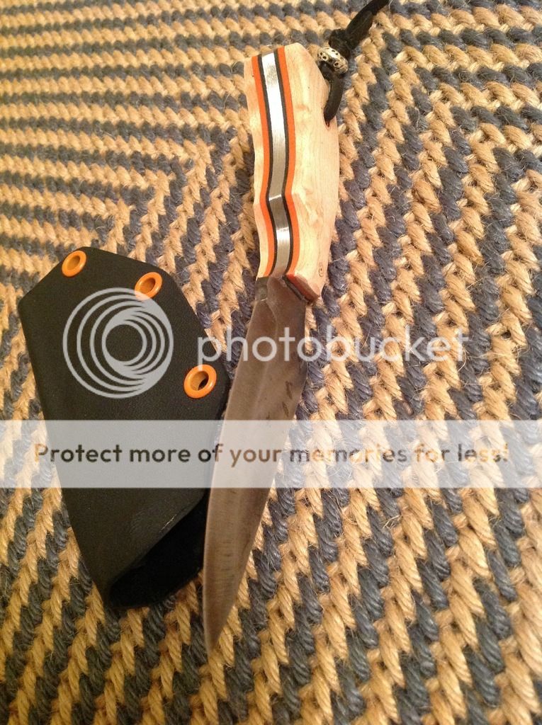 Hi, this is my most recent neck knife design. It is super comfortable in the hand. Both are made from .125 1084 high carbon steel with a etched finish. Razor sharp. Six inches OAL with a three inch flat grind blade. Both come with kydex sheath and lanyards as shown. Asking $65 each with free shipping CONUS. Thanks for looking!