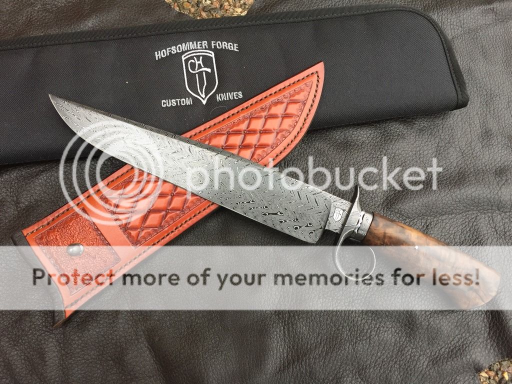 Here are two that will be with me at the show in Janesville this weekend. First is my first ring guard, in Turkish twist and Turkish walnut with some leather by me. Next is a feather cowboy bowie in Ringed Gidgee
