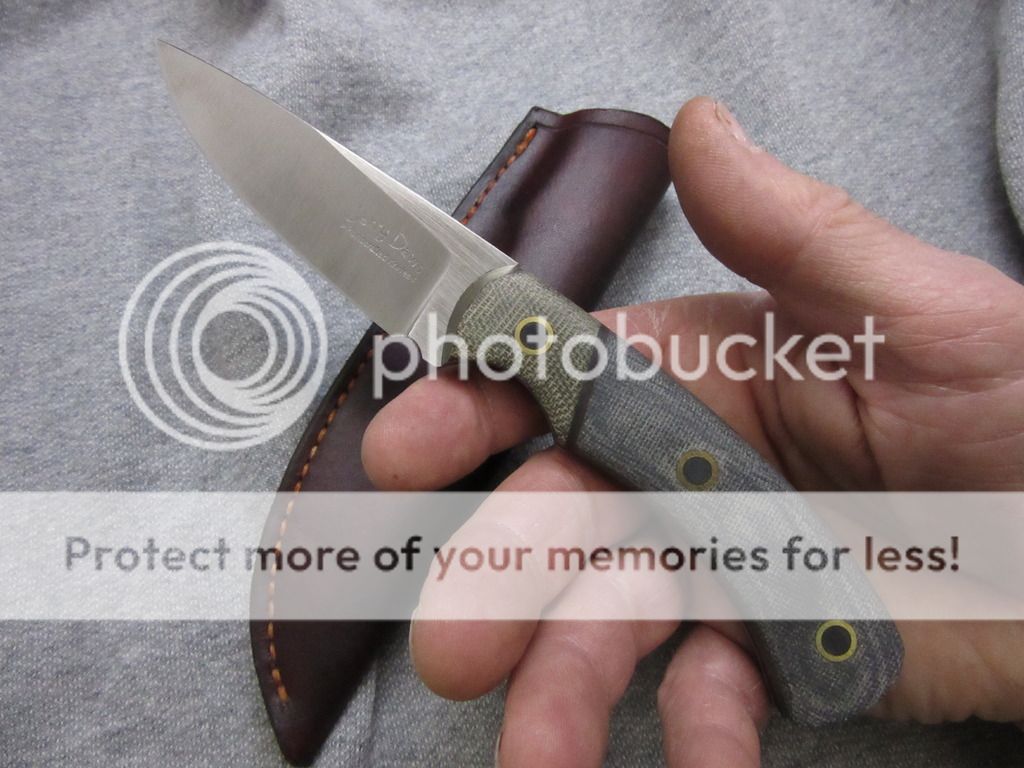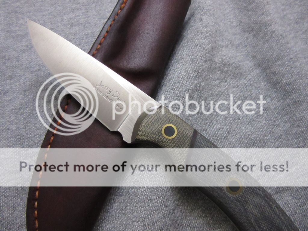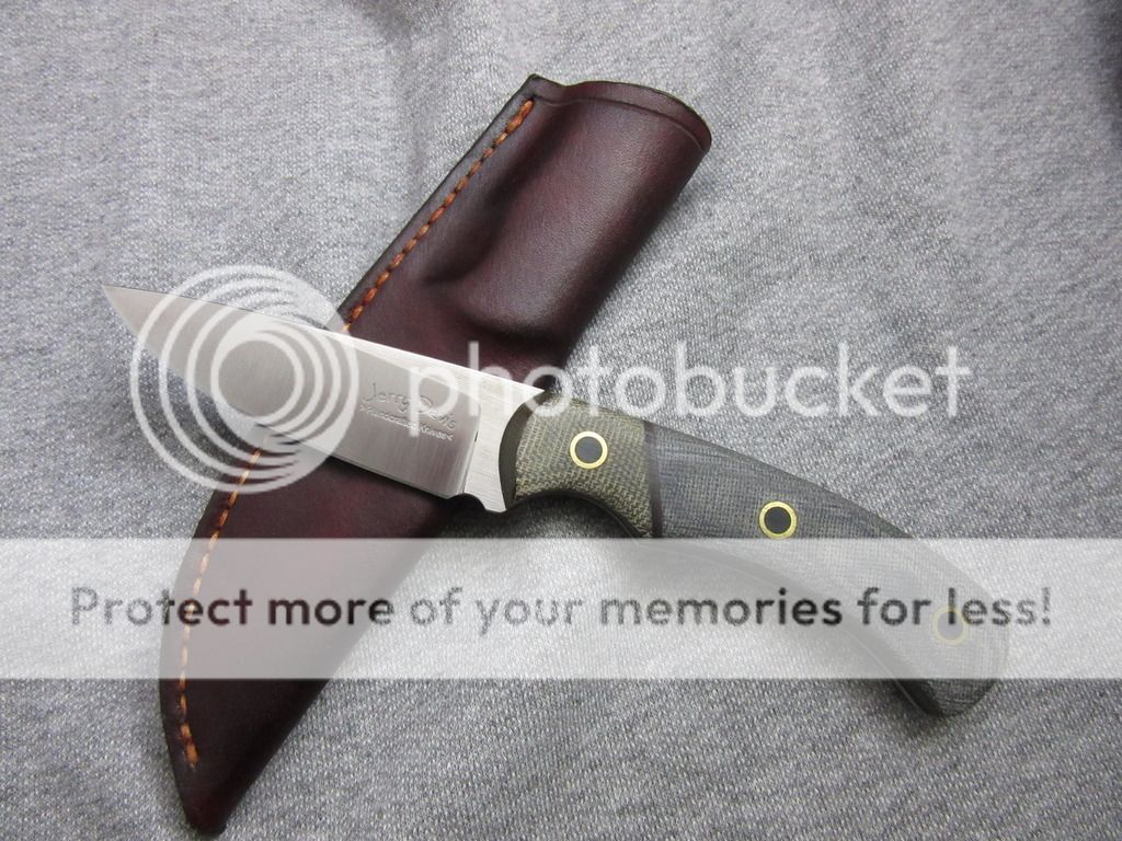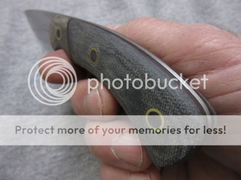 Gray Terotuf scales with OD green micarta bolster with custom flared and black epoxy filled pins.
