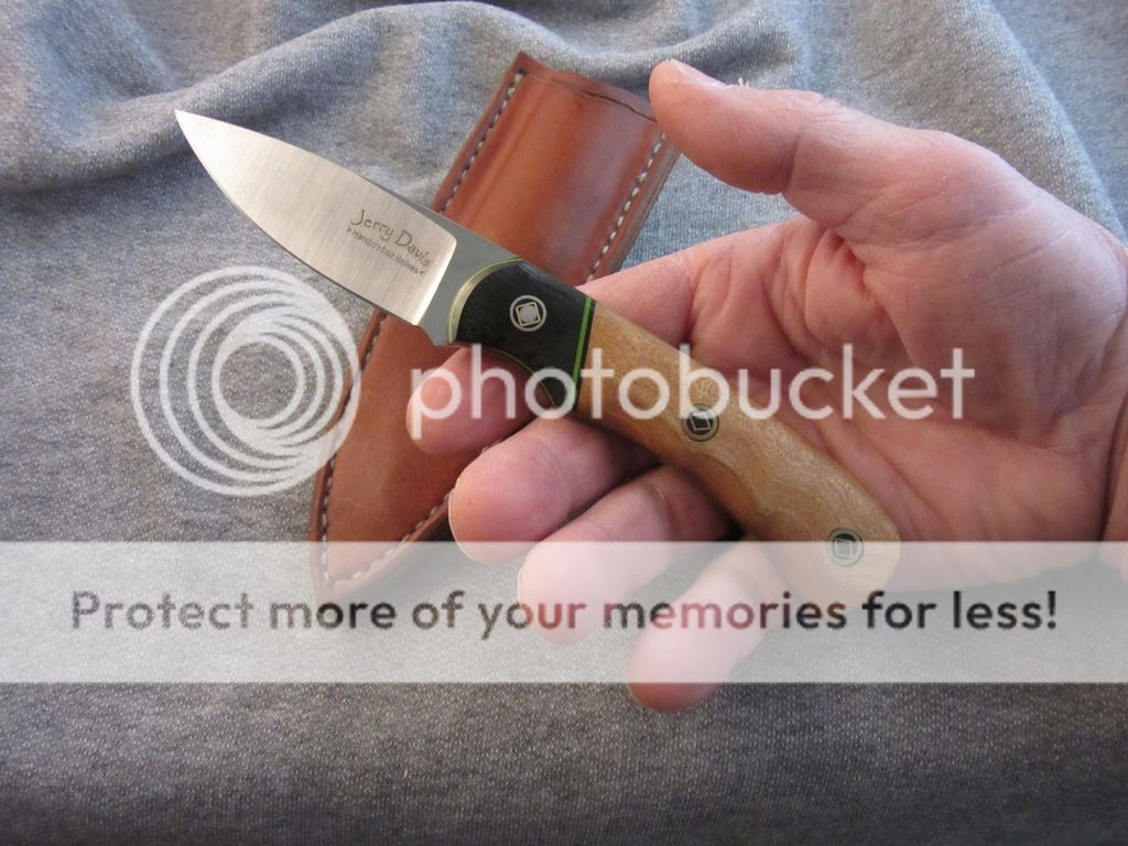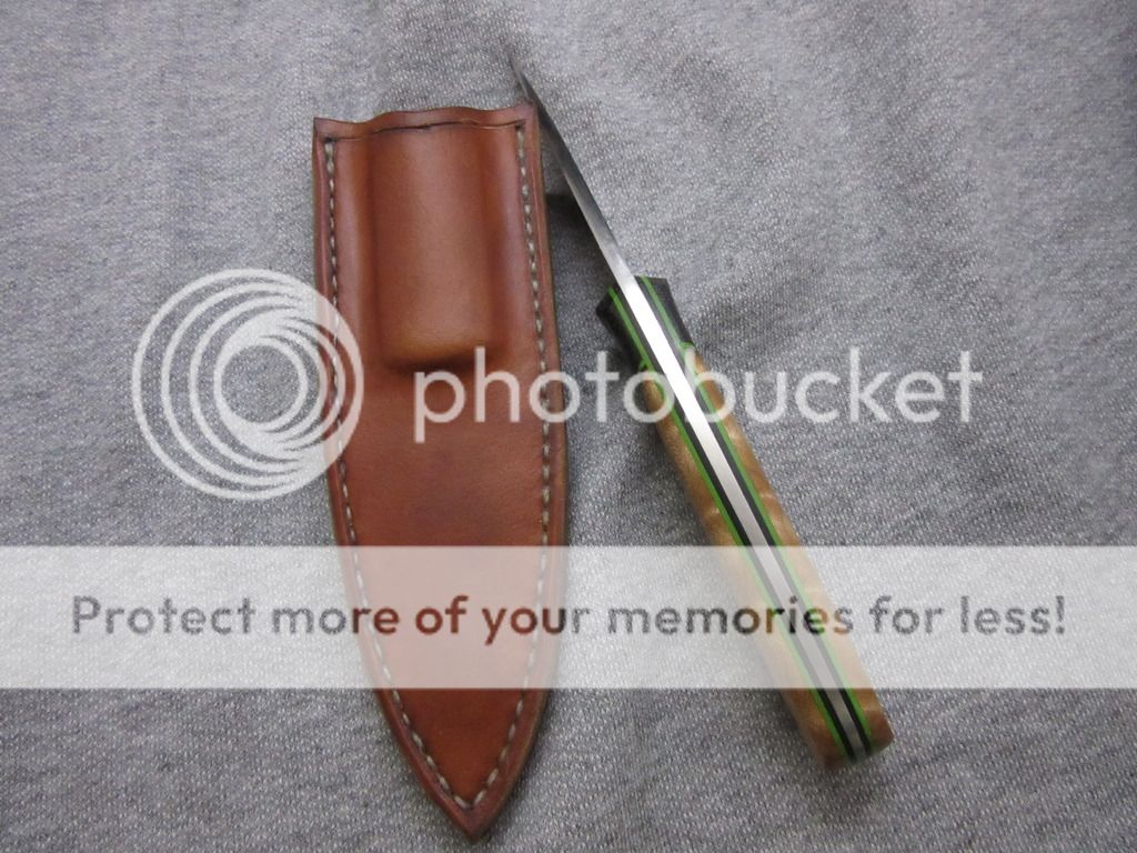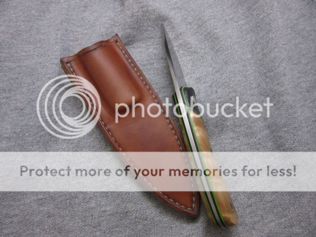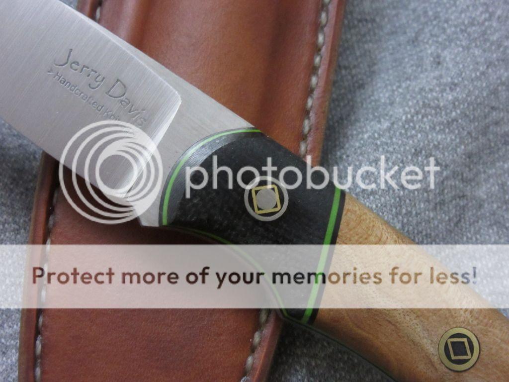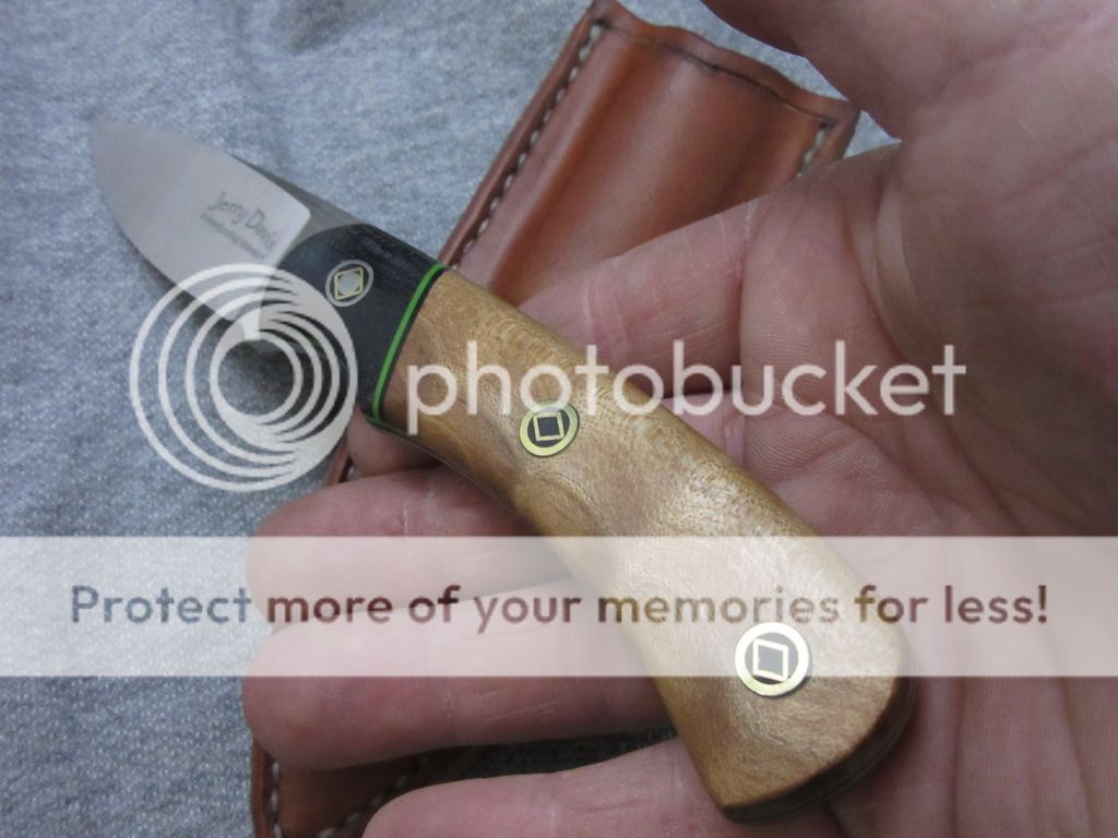 Quilted Maple scales with black micarta bolsters and custom flared mosaic pins.