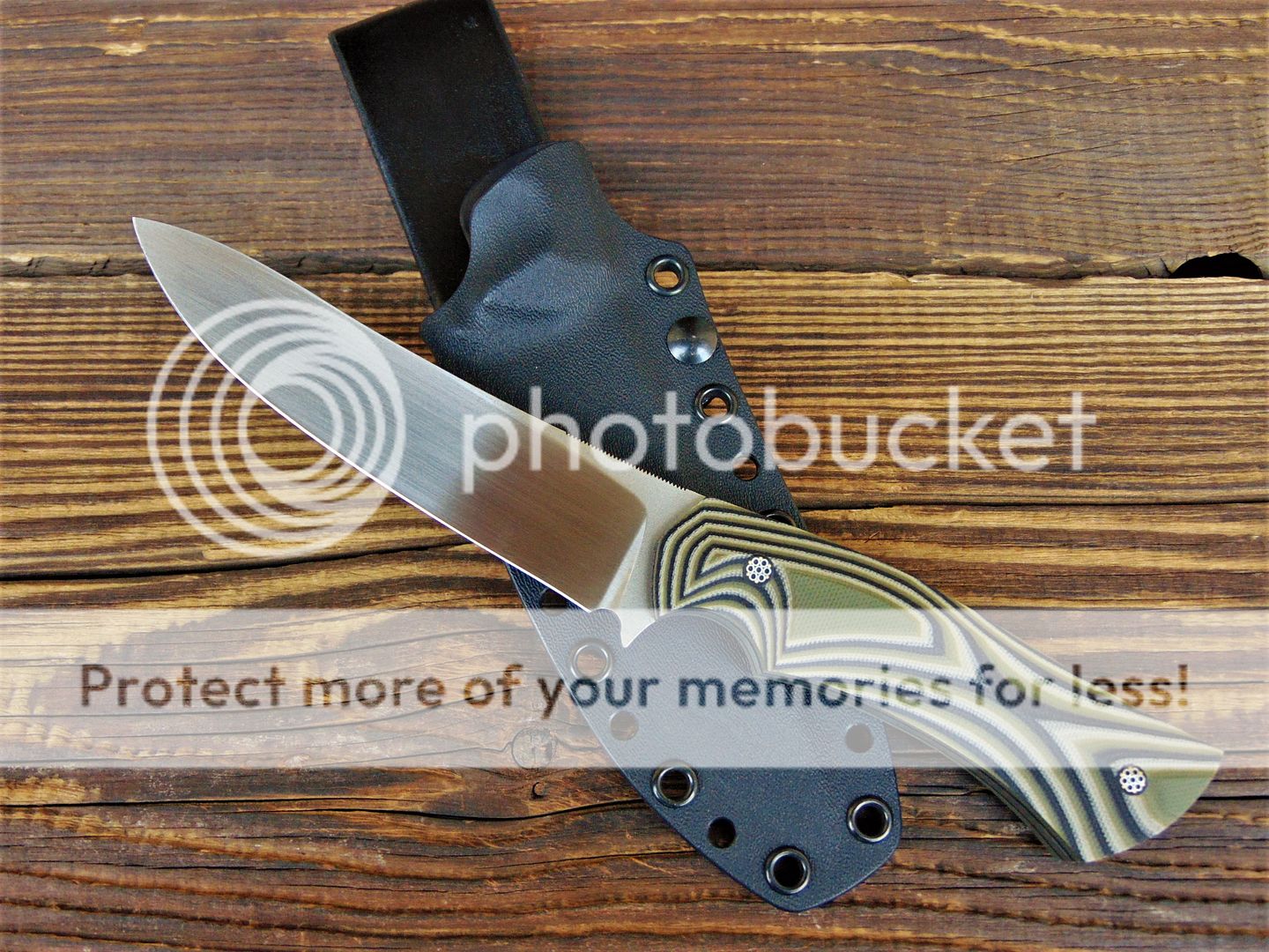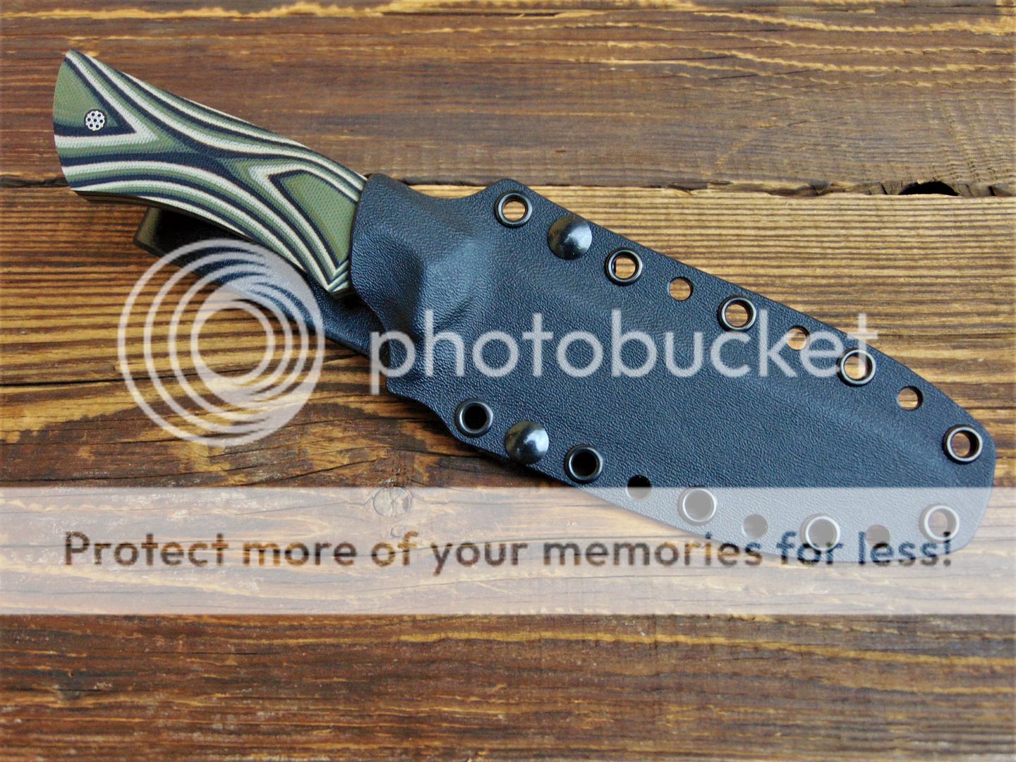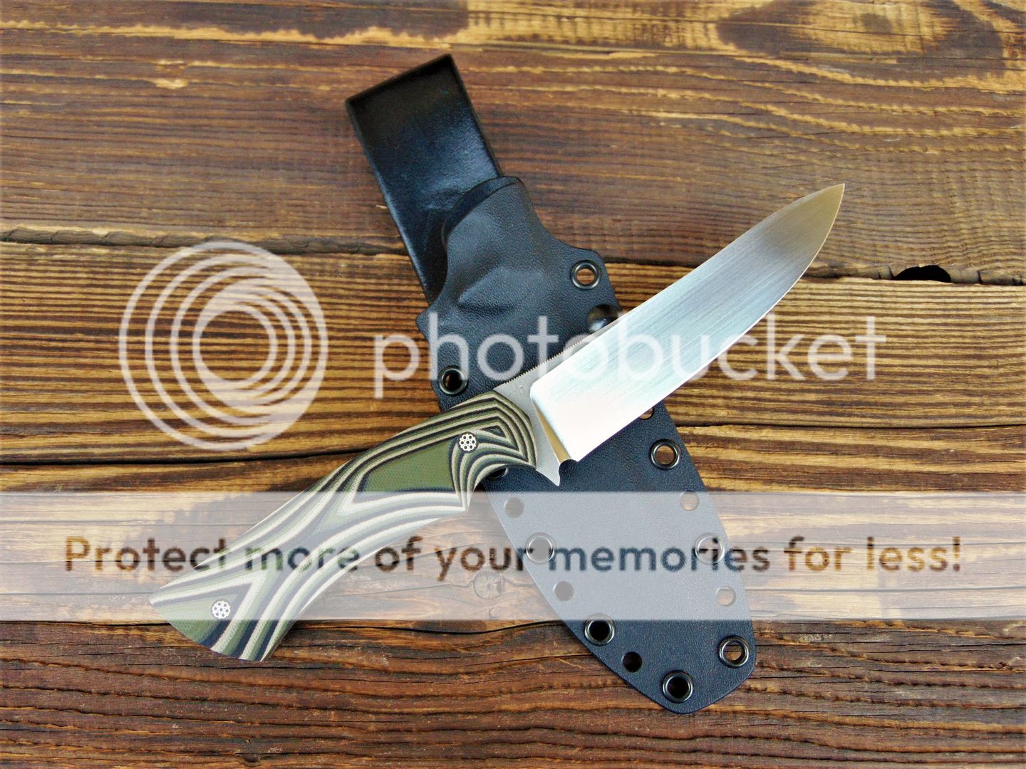 I have still for sale this knife and would like for it to end up in the right hands. A few basics about it follow. The blade itself is made from Elmax steel, and hardened to between 58 and 60 hrc and finished with a highly resilient DLC. The rock solid ebony handle is topped with a stainless steel bolster finished using DLC. The rugged sheath is crafted from cowhide and lizard skin.