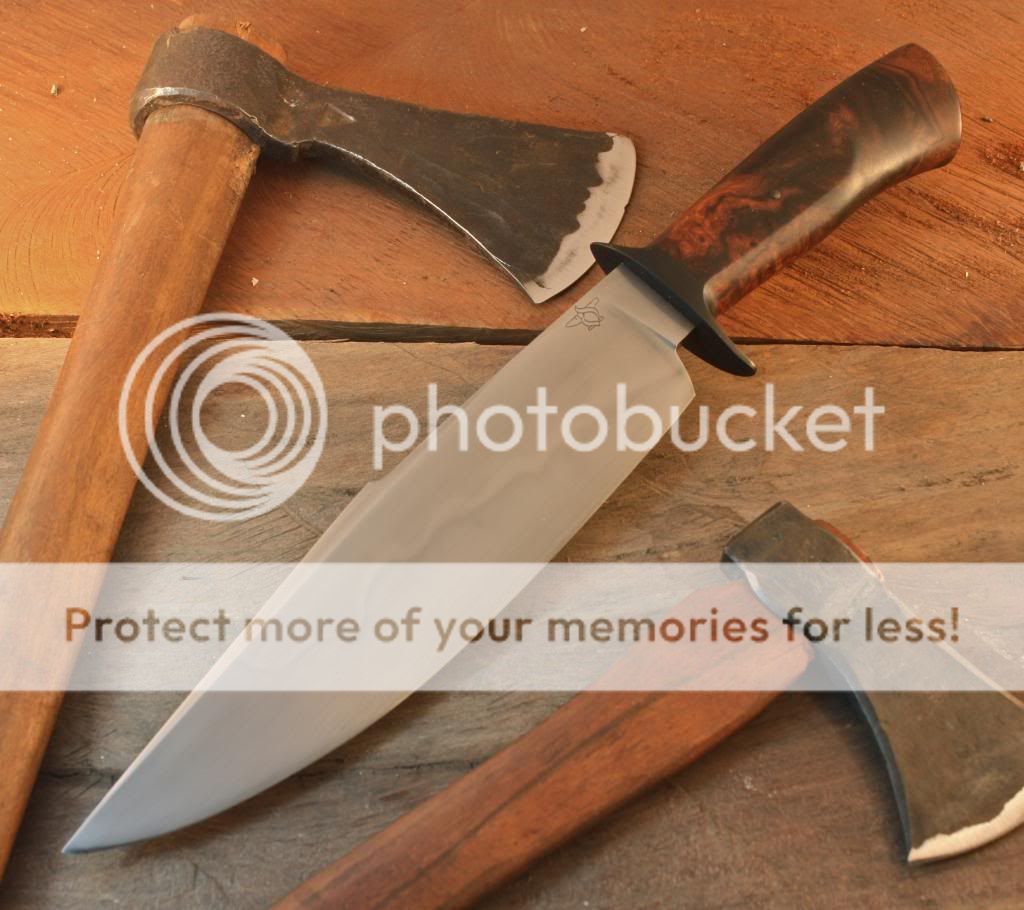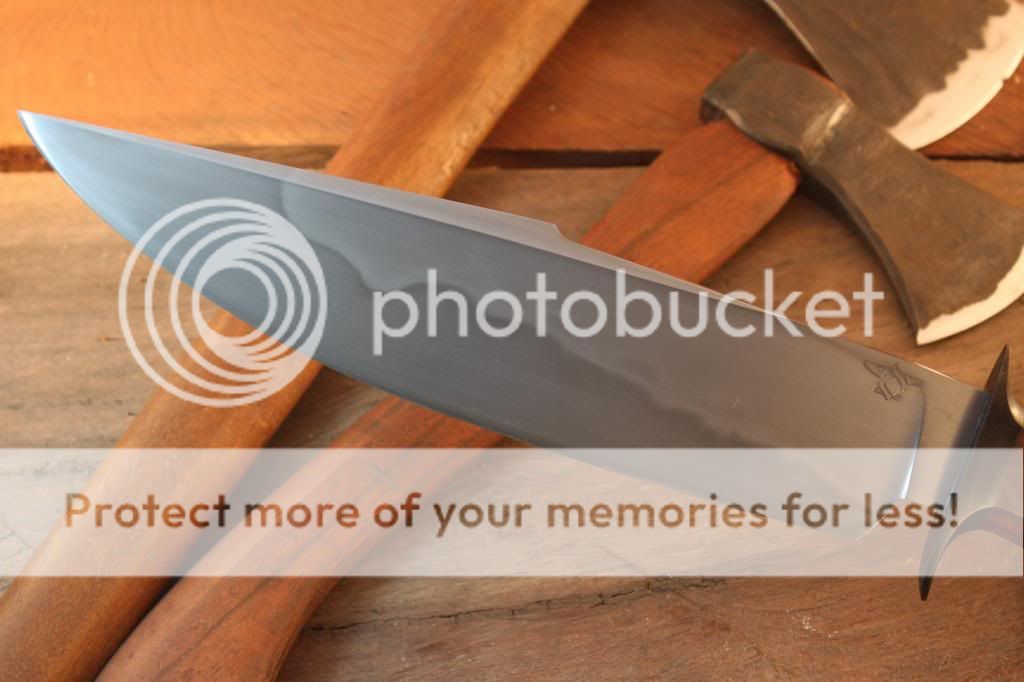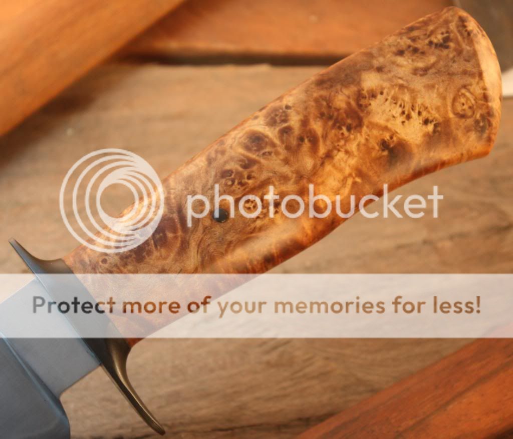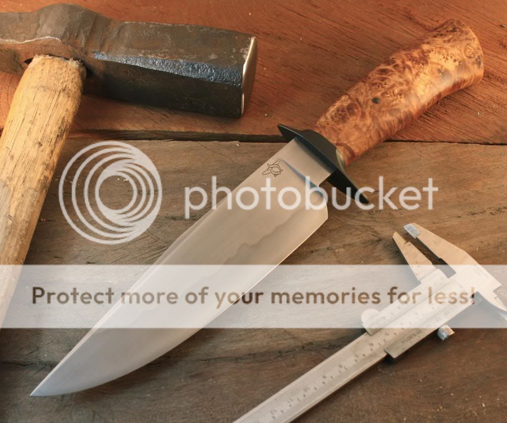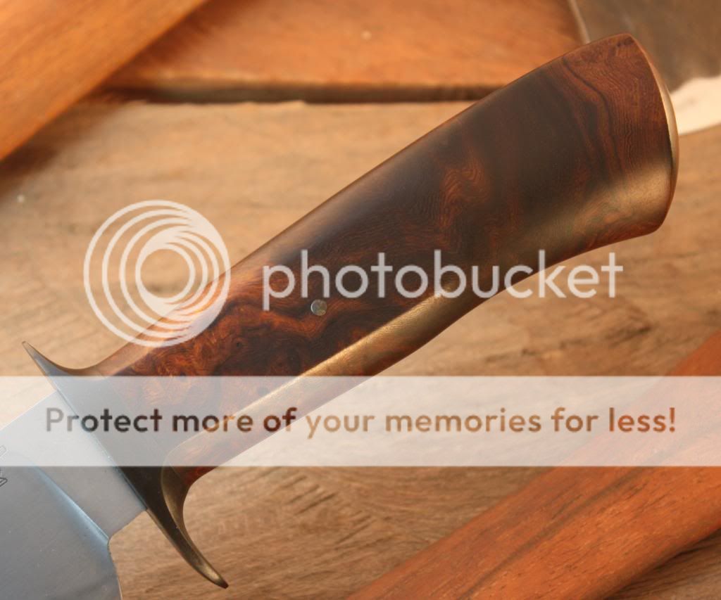 Here are two recent bowies fresh from the shop here in Managua. They are both 1095, mild guards (blued), the first has an oregon maple burl handle while the second is desert iron wood. The first is what i call my "mid-bowie" and the second is a newer style that I've been working on. To me the belly in the bigger bowie is more pleasing.
