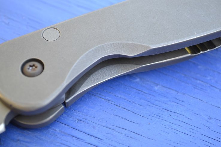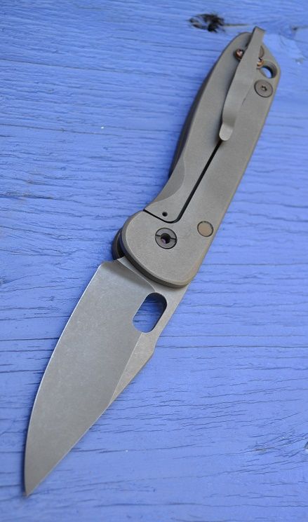 These are both a bit different from each other... the one with the lock cutout on both sides of the frame was the third one I made but was waiting on a blade. The other is from this recent group and only has the lock cutout on the inside. The reason for the cutout on both sides of the one was for tuning purposes and the knife is very smooth as a result of this. The knife with the single cutout has more lock pressure and is extremely strong. The clips are different too... These are also the first two with no swedge and a super tall deep hollow grind for maximum metal removal and strength behind the tip. I also just like how the grind looks with no swedge. Ghost signature on the spine. I'll continue to mix these up as I am always doing my best to improve things as I go.