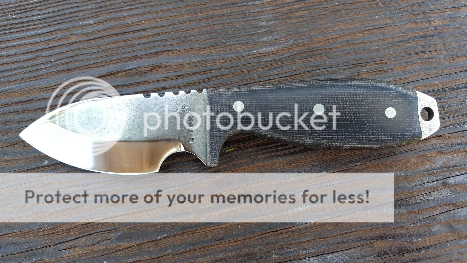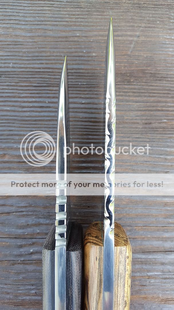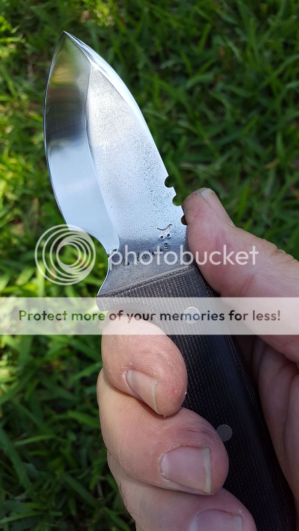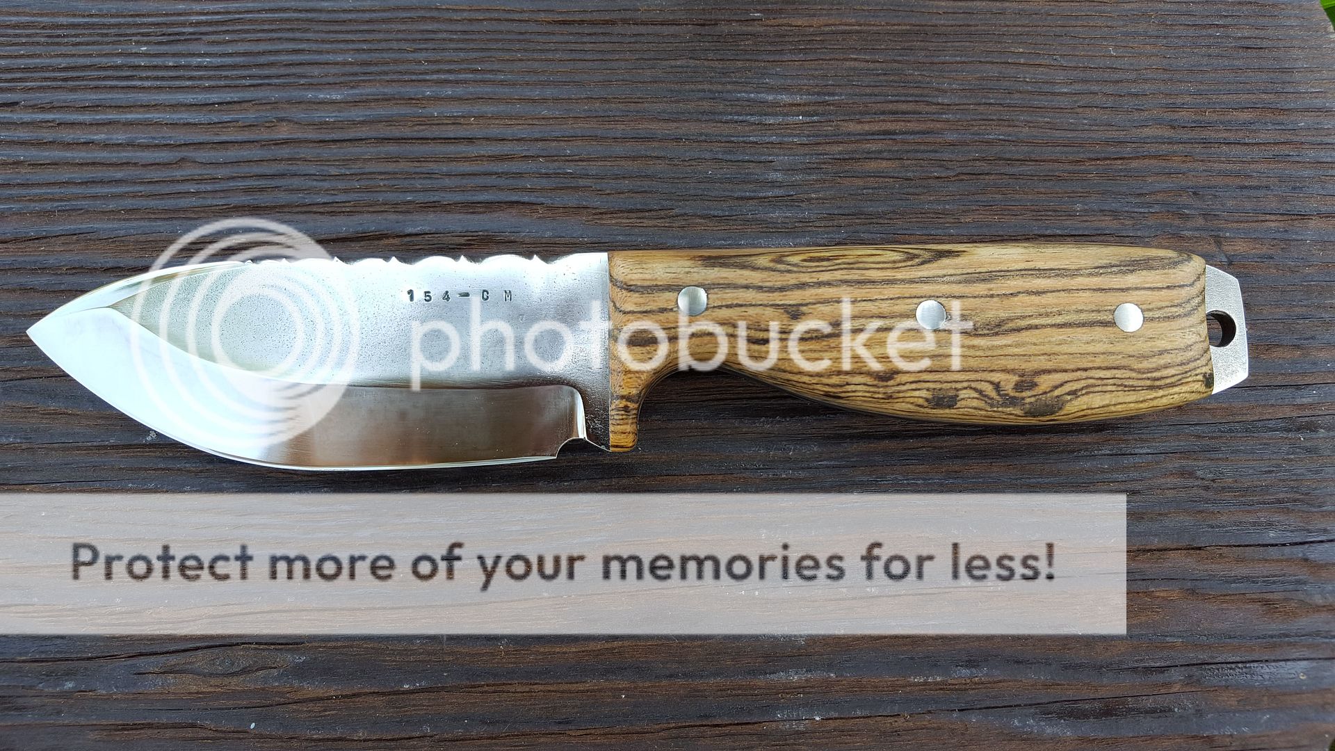 Finished the two Skinner/Hunter knives, so up for sale they go. Both are made from Aldo's 3/16ths 154-CM and both are hardened to a Rockwell of 60.