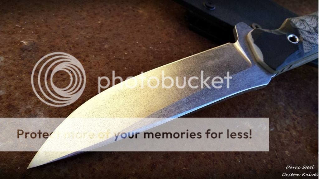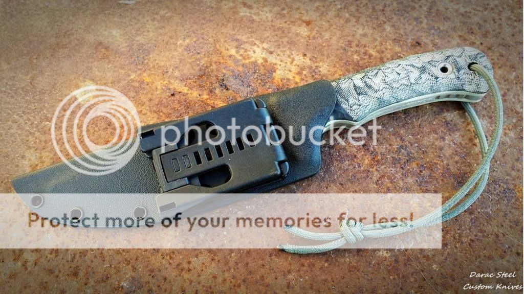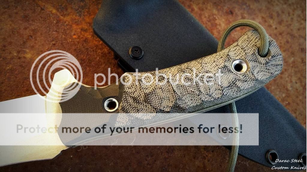 - Handle material : Custom laminated textured G10 (black and gray G10 with Green canvas micarta)