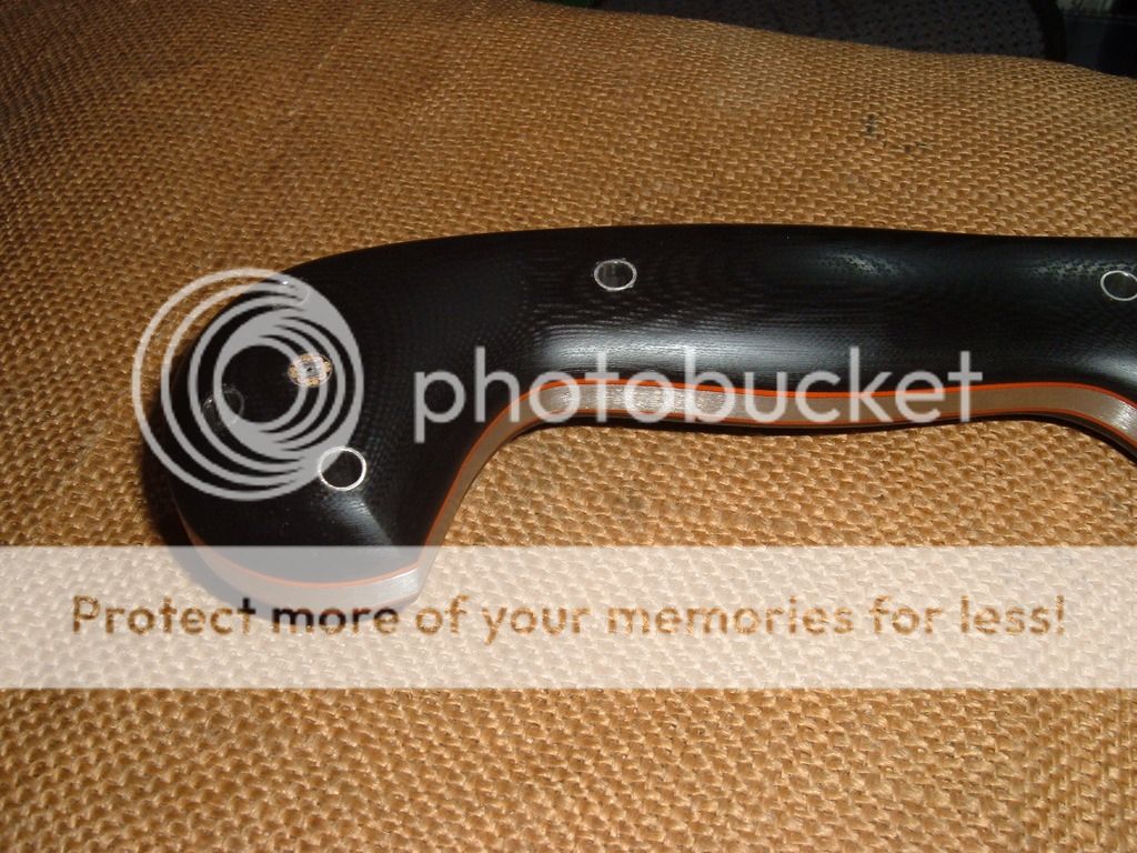 OD Green G10 Seax $250. .200 thick blade. Overall 11 7/8 with a 6 7/8in blade. Weight is 12oz. Orange G10 liners.