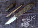 Just for the fun of it, I also had kscarbaj to a matching thumbdisk out of the same marble CF. I have no complaints with the standard disk, but I thought it would be interesting to try. It'll be curious to see how CF holds up to long term use as a thumbdisk, and it's not as grippy as the stock disk, but depending on your preferences the lack of grip might be a good thing. In use, a less grippy disk just means you have to be more conscious of your thumb placement and pressure when opening the blade. Outside of use, it just plain looks great. I think it really pops with the scales and keeps the theme of the knife very nicely. The new scales completely transform the knife, and have pretty much kicked out the rest of my collection from my pocket. The maker did a great job with everything, and I'm thinking about ordering more varieties.