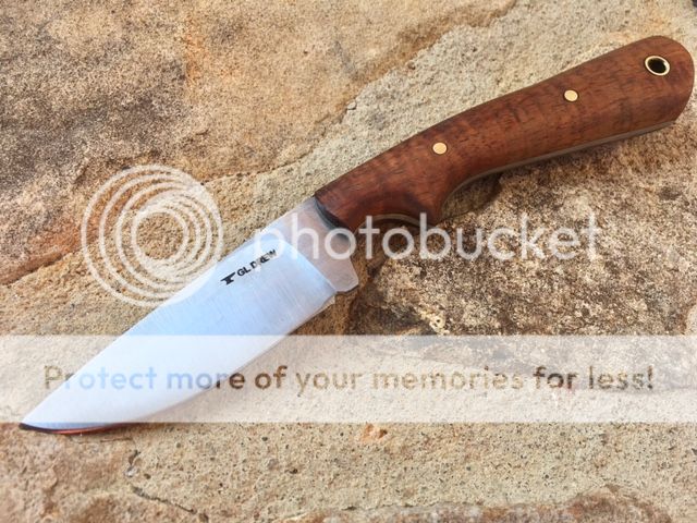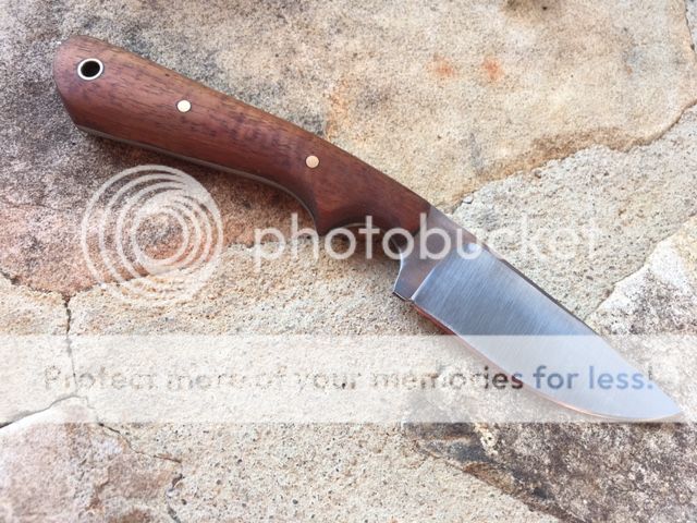 Heat treated in my shop with three normalizing and two tempering cycles to Rc 58-60 with attention to a fine grain throughout the blade