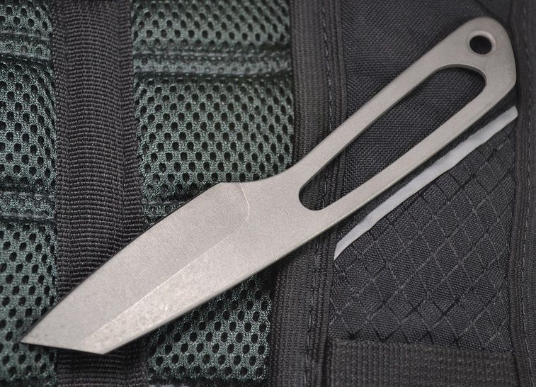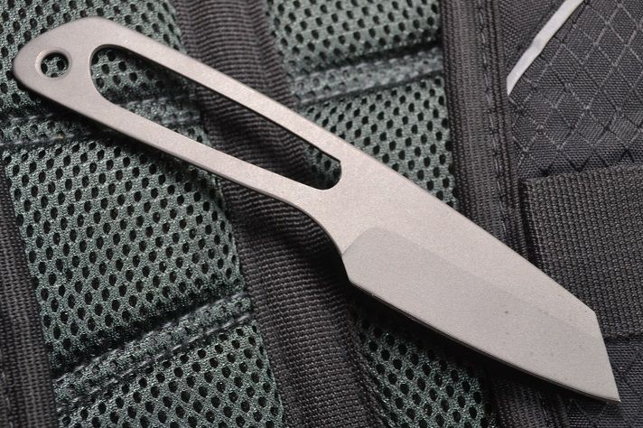 6al4v Titanium with 72 RC Tungsten Carbide Edge - excels with abrasive materials such as cardboard, very aggressive with meat, seatbelt material, vegetables, cloth, cord, softer materials, rope, raw bone, paper, etc...