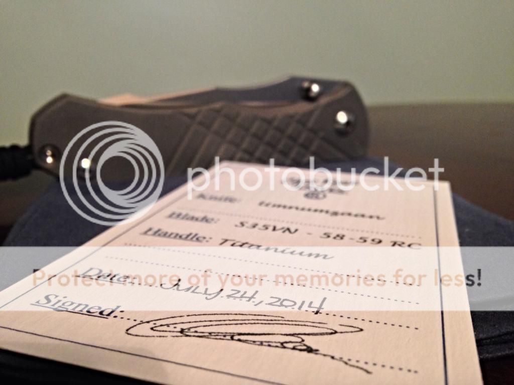 Now I have to decide . After a couple of minutes pass and I come to another idea and perhaps if I buy this Umnumzaan now I can trade it towards that large insigno as he does not have one and it will allow me to fondle this one in the mean time. I call him and let him in on my plan and he is game. I walk out with the knife with a smile on my face and get into my truck holding, opening and closing and just admiring the fit and finish as always. I realized I didn't check any of the in box hardware or paper work!!! I open it up and first thing I see is the date of birth pop out me