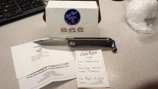 Only carried a few times. A few small scratches on the titanium but blade is perfect. Never used. Very solid lockup and centered. No blade play. Original edge afaik. Box and candy included.