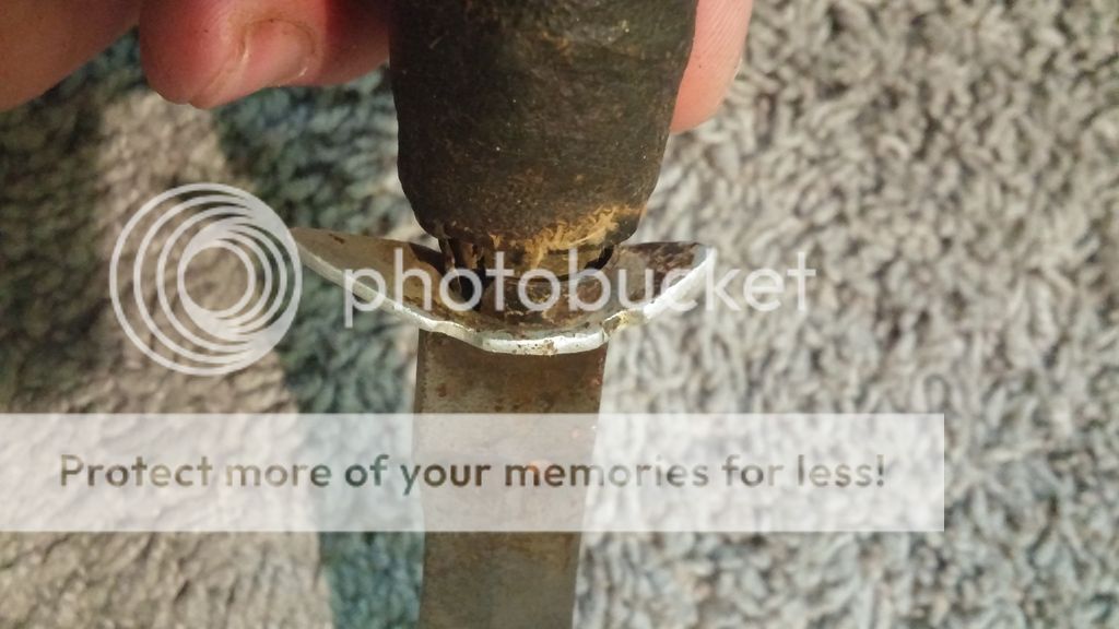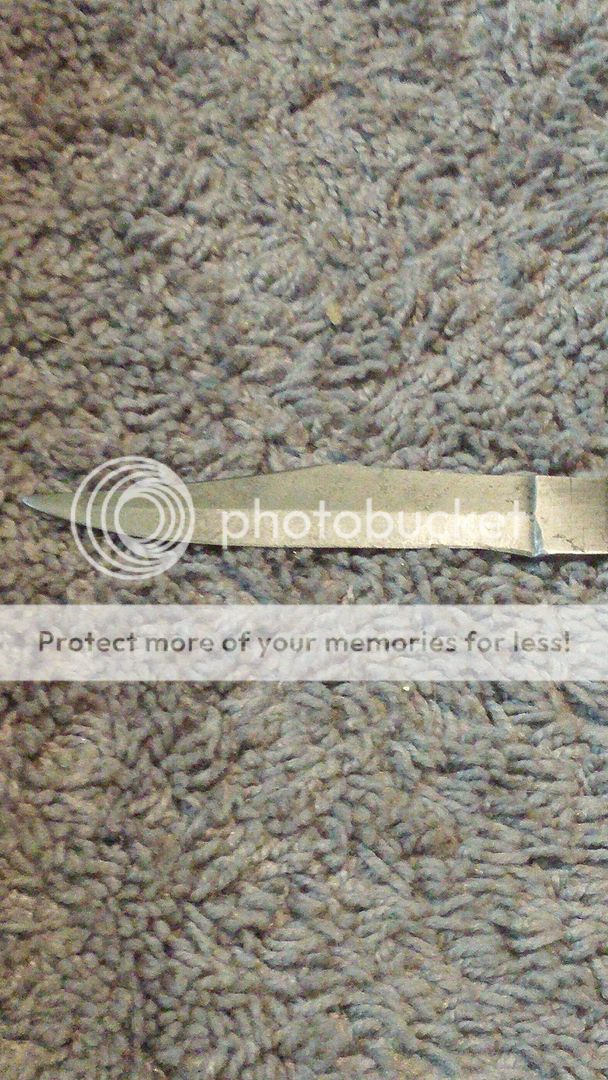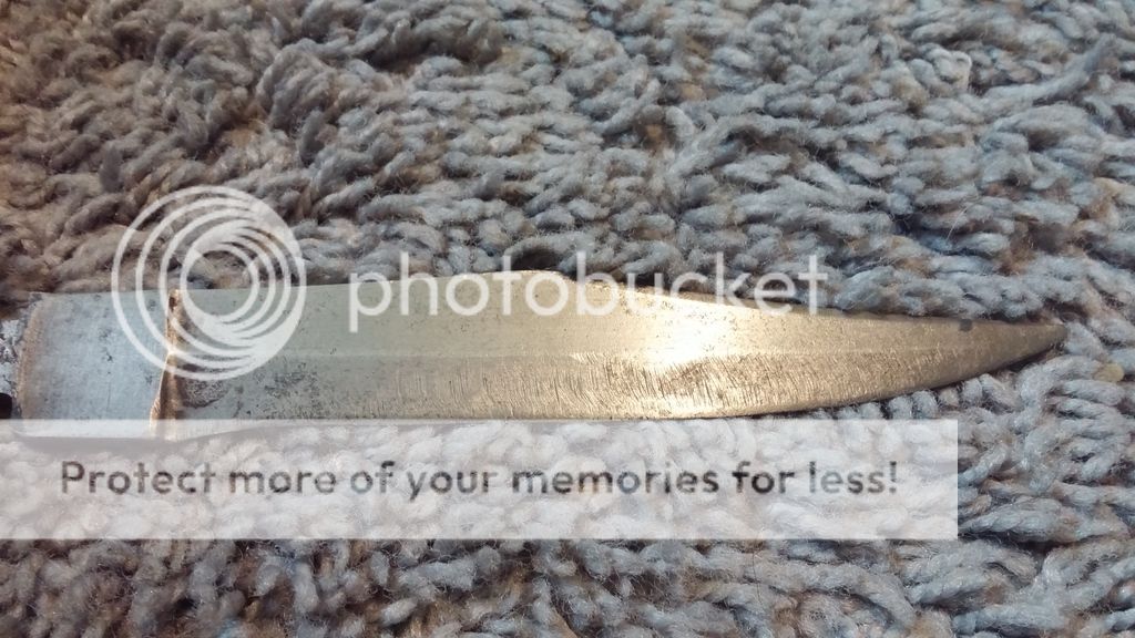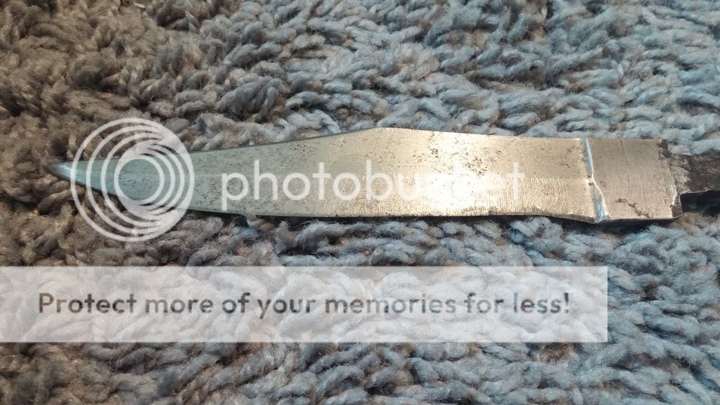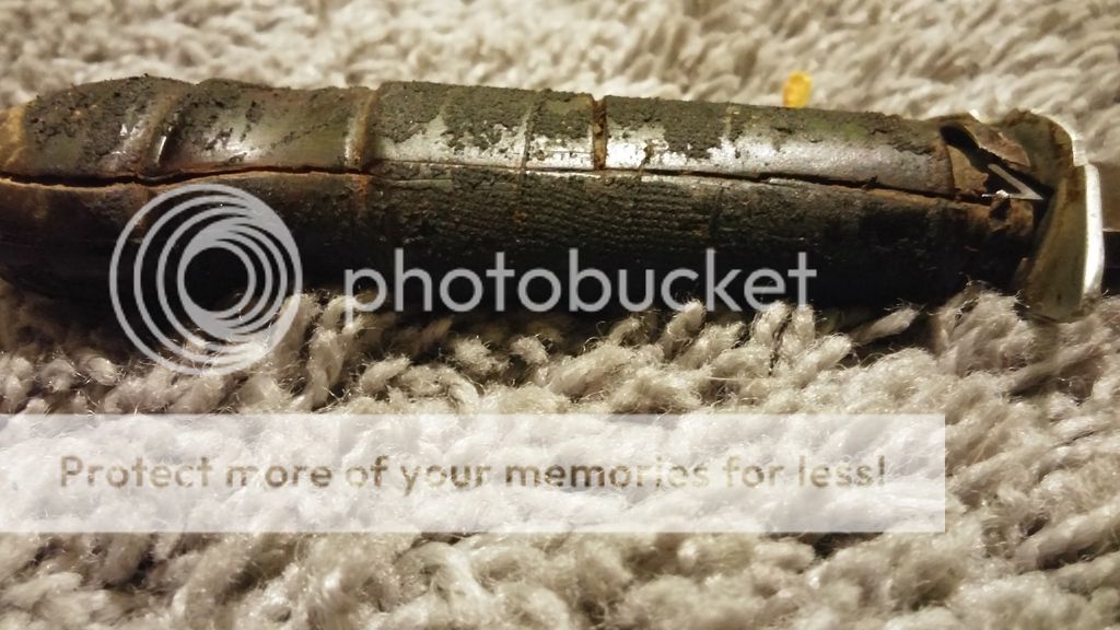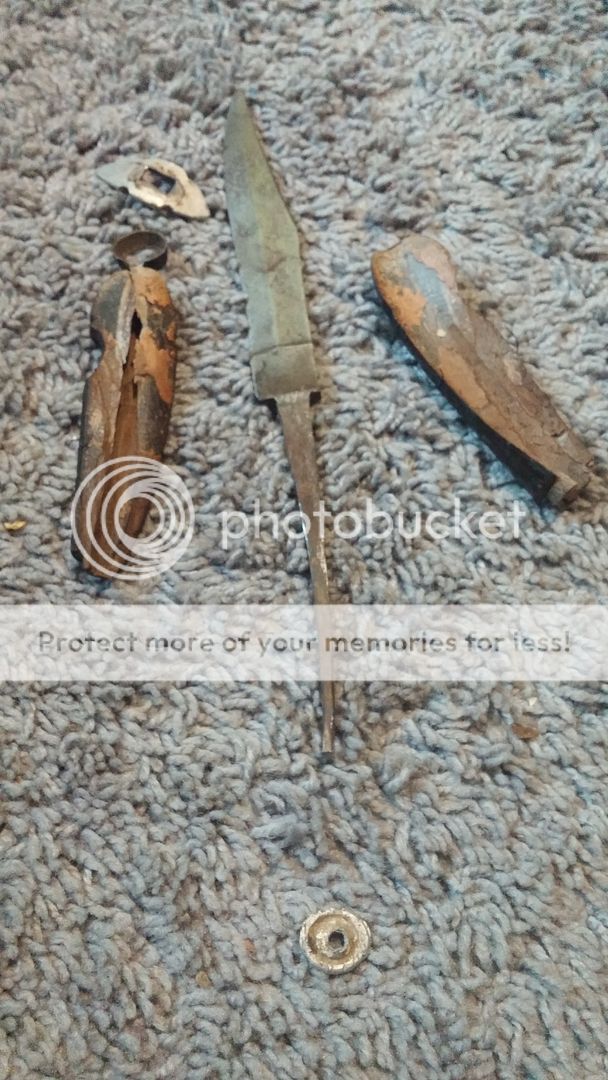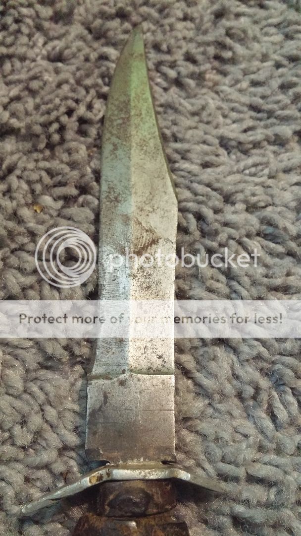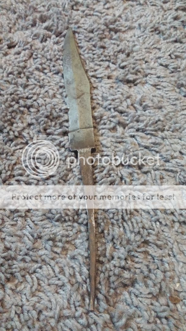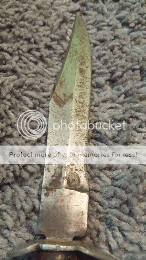 As for the unknown part, if anyone could identify it that would be great. Here is what I know: there are no blade markings, and no evidence of any being ground away, the handle is made of what appears to be wood (it is hard to tell with the tape residue, and paint on the handle).