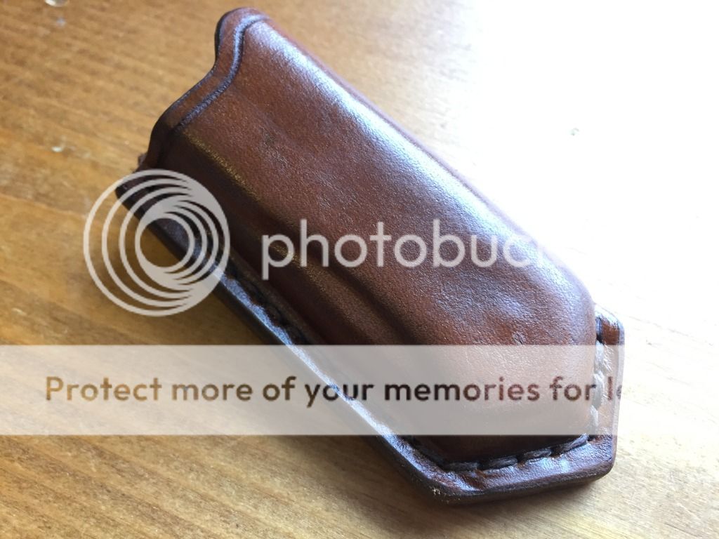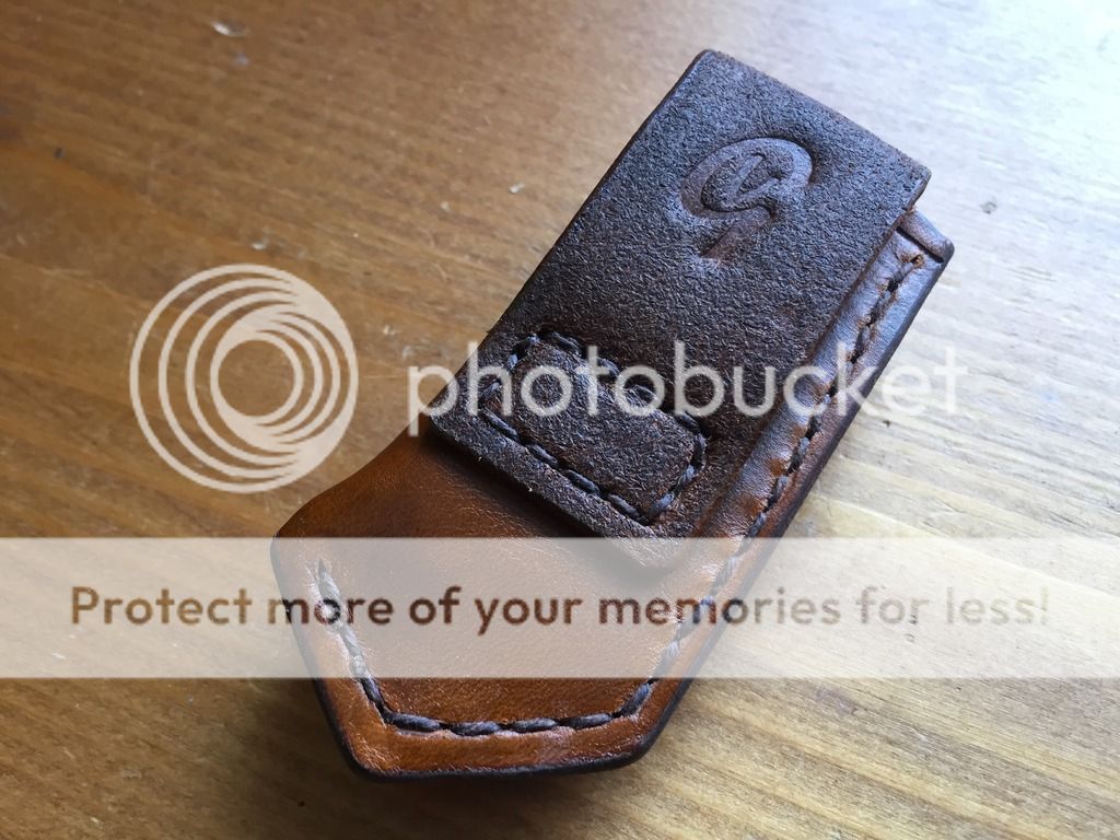 Great little made wet formed (small drop point, no pocket clip) leather sheath.