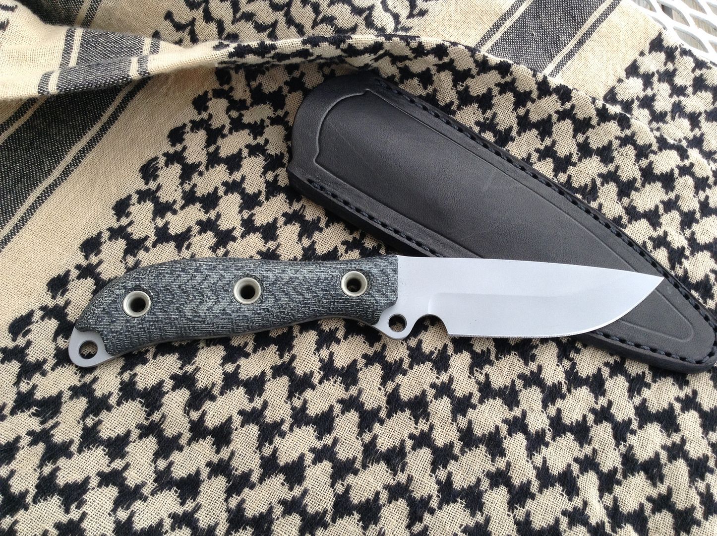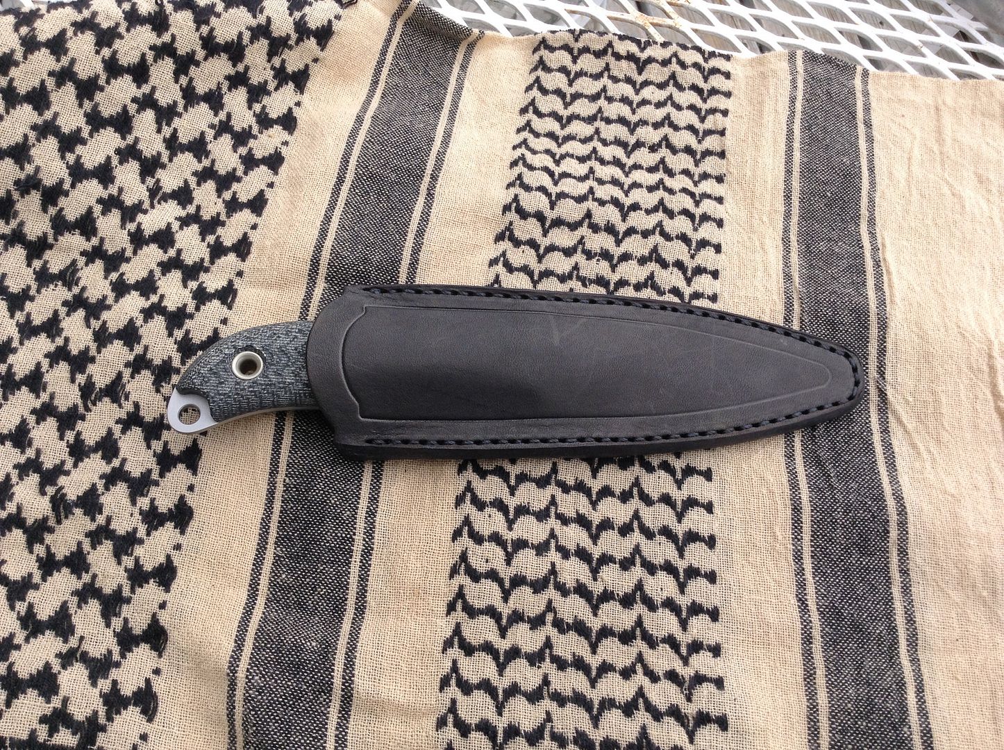 Next is a new, Busse Ative Duty in Elmax with black Micarta. This beauty is razor sharp. Includes a perfect fitting Great Lakes Leather Works Sheath. At 3.7 oz this would make a great EDC. ---Sold---