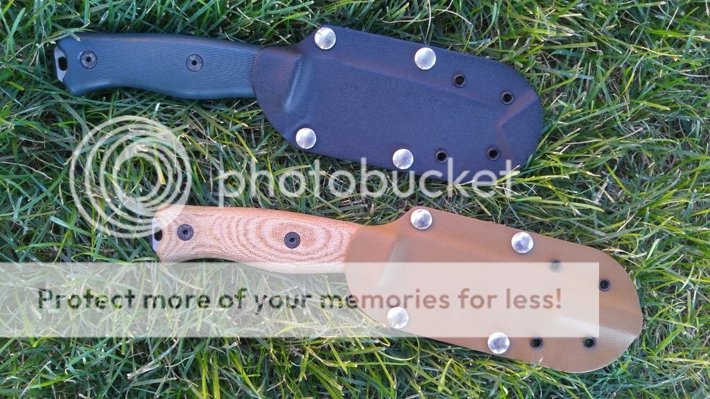 The knife currently wearing the forest green came with blue denim. I wanted to try the G10 and liked the look of the forest green so I'm just giving the denim a break for awhile. Don't know that I could part with these, and they've got some 'beauty marks' lol. You can see some wear on the fasteners in the top photo, those used to hold down the denim. Nice scales, though. Nathan laminates them with a black G10 backer, so it's like a built-in liner.