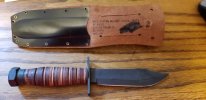 This knife was adopted in 1957. From 1957 to 61 it was made with a 6 inch blade. The blade was shorted to 5 inches due to pilot feedback and the basic design of the knife has stayed that way since.