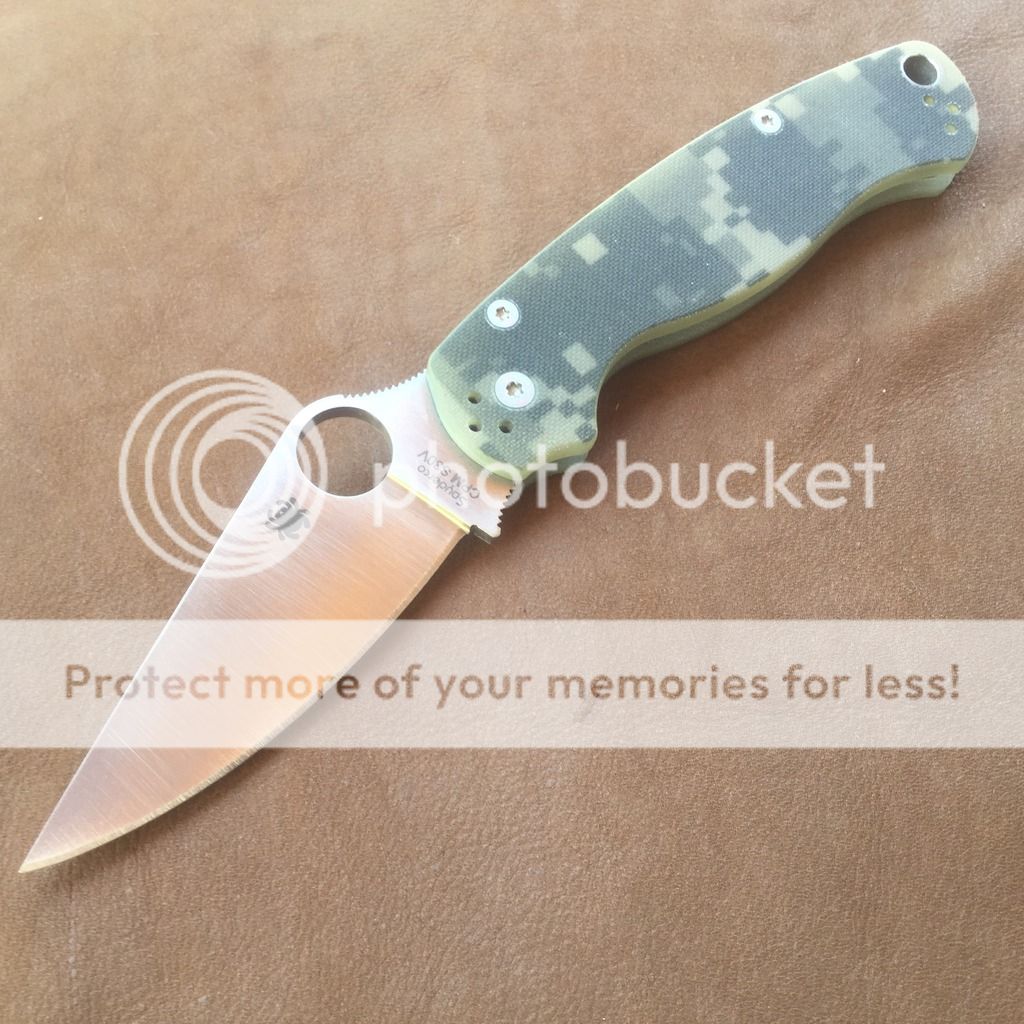 Spyderco Paramilitary DigiCam G10. S30V steel. Lock up is solid. Buttery smooth as you would expect. Has been sharpened. $100 > $90.00 SOLD