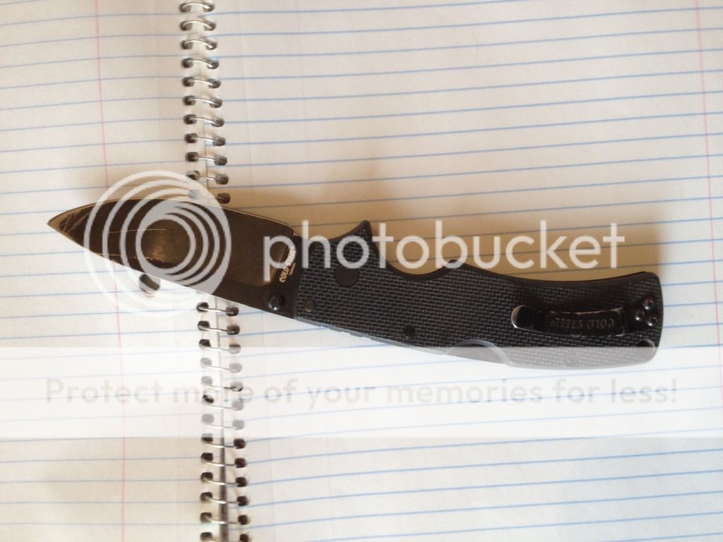 I have a user Cold Steel American Lawman with the black coated AUS-8 blade. Has lots of wear in the coating on the blade and the tip needs to be fixed. Blade is centered and lockup is solid. Asking just (SOLD) shipped using PayPal gift or add for fees.