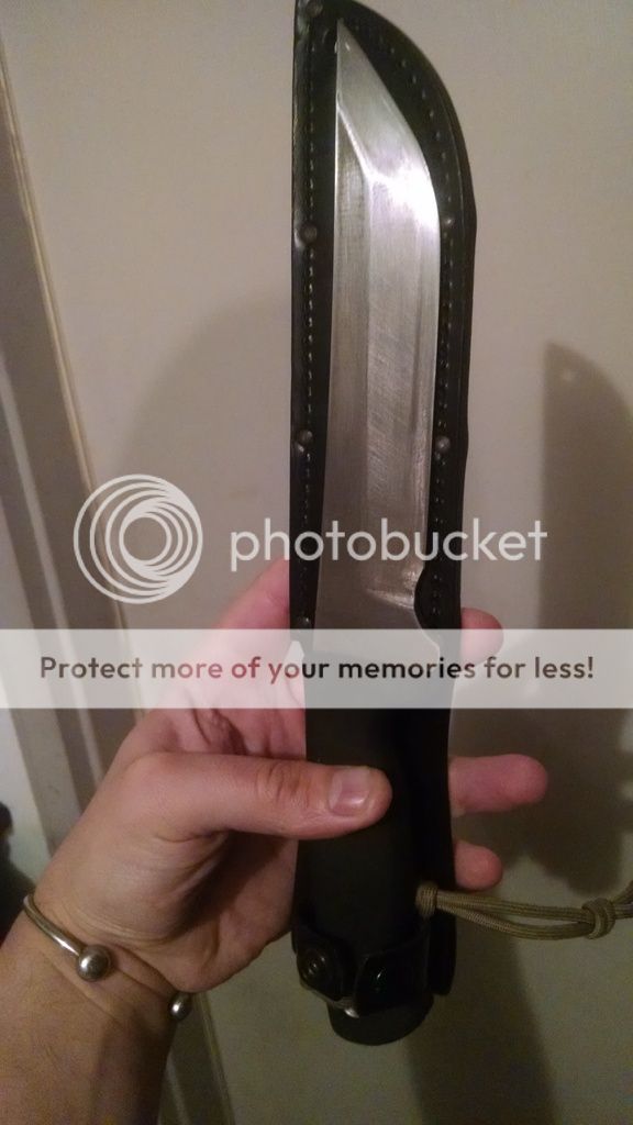 -Used and sharpened by me. Arm hair RUNS from this beast. Mostly just sat in the glove box of my vehicle "in case"