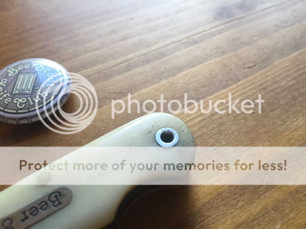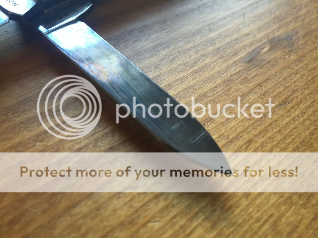 ) to cover up two sharpening marks as I received it. One pictured on pen blade while other is tiny on non presentation side of main blade near tip.