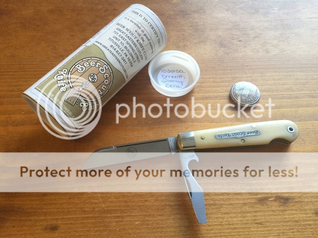 2) Beer Scout in Smooth Ivory bone. No bail and slight scratches pictured along side black speckling. No patina with factory edge.