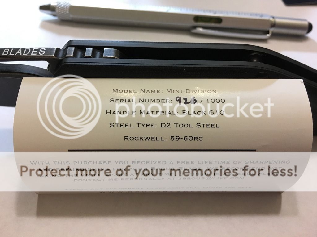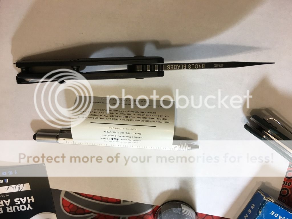 Brous Mini Division Flipper - stout knife for sure - acid wash D2 - second owner - has been carried by previous owner - no signs that its been sharpened - smooth action - again, would be happy to reprofile the edge on wicked edge before shipping. Overall in really good condition. $175.00 shipped