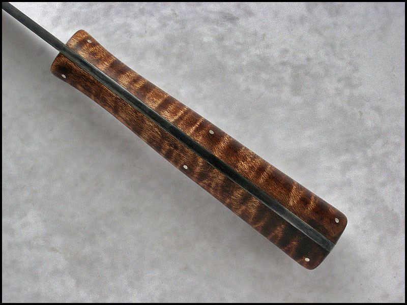 Another fieldgrade knife for sale. steel - 52100 carbon steel / 3.2 mm [0.126"] length - 237 mm [9.331"] blade - 120 mm [4.724"] handle - dyed Maple, nickelsilver sheath - leather Price - 175 USD plus 18 USD for Global Express SOLD Payment - Paypal