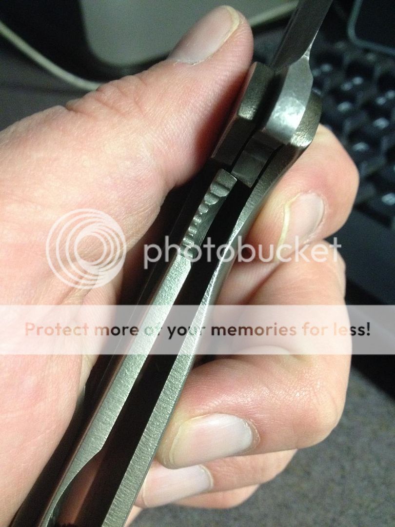 The handle is very ergonomic. It feels like it was made just for me. It melts into the hand, and develops no hot spots even during pretty heavy and extended use. I attribute this to the fact that every surface on the handle that would come in contact with your hand (and actually the entire knife) has been "gone over". Everything has been nicely chamfered or dehorned. No part was neglected! Just stunning! The finish on the Ti is excellent, and I think it goes with the blade finish very well.