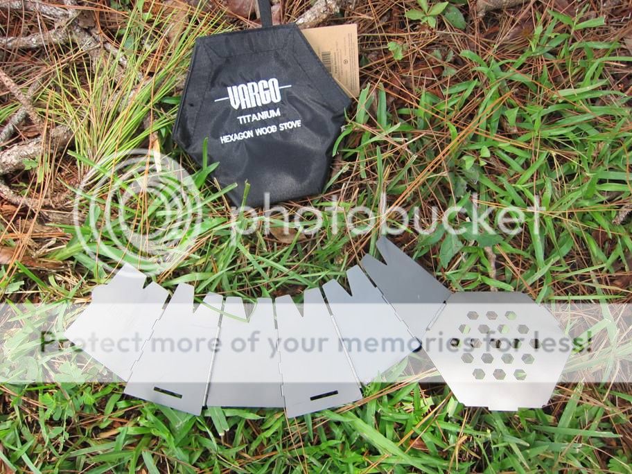 It is Titanium, folds up, weighs only 4 ounces. It comes with a nylon storage pouch. Set up is quick, as all the panels are hinged together. The stove snaps into shape.