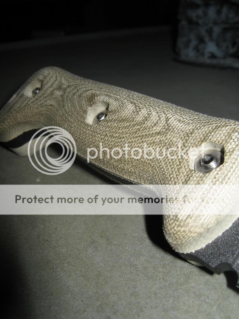 Here is a closeup of the bolt after I installed the micarta handles. Notice that the bolt does not extend beyond the nut nor is it flush.