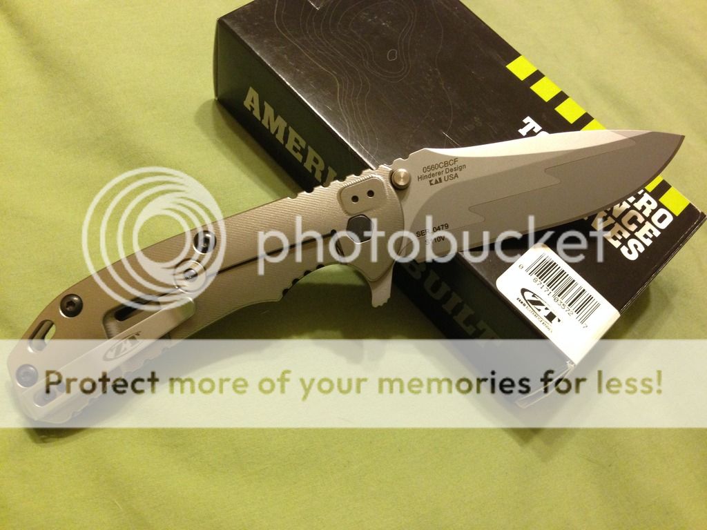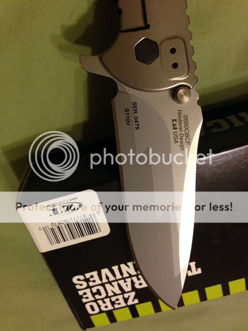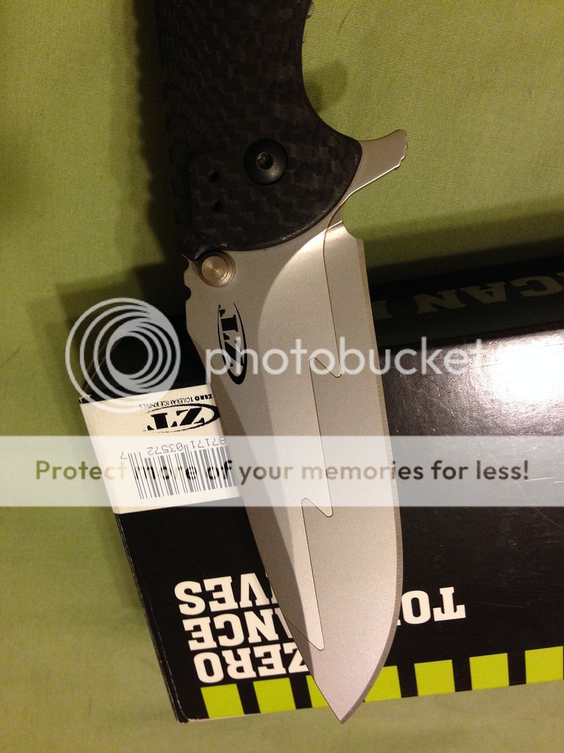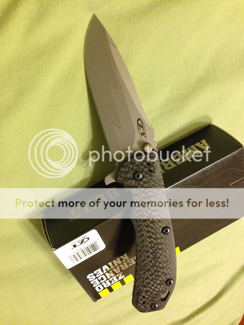 Have a great condition Zt0560cbcf for sale today. Beatuiful knife, solid lock up (about 50%), and perfectly centered. Only flaw is a mark from when I put on a zt0808 pocket clip to see how I'd like it. I didn't and pulled it back off but it left a small mark on the lock bar stabilizer and a tiny tiny mark right below the lbs in the ti side. Very small and I did my best to picture it. Also zt will send you a free lbs if you wanted to change it. Also to be noted, this one (and the other zt0560cbcf I've owned) has a somewhat weaker detent but flies out good when push button method is used (very much hinderer xm18 like but on bearings) , it can be "light switched" as well if you do it quick and don't only rely on the detent, also flies out great with thumb studs (so much so I ALSMOST made this into a non-flipper).. Has a smooth action as you'd expect, blade falls free nicely when lock is released. But it never gets used bc of its beauty so off it goes to a new home! Comes with box and paperwork.