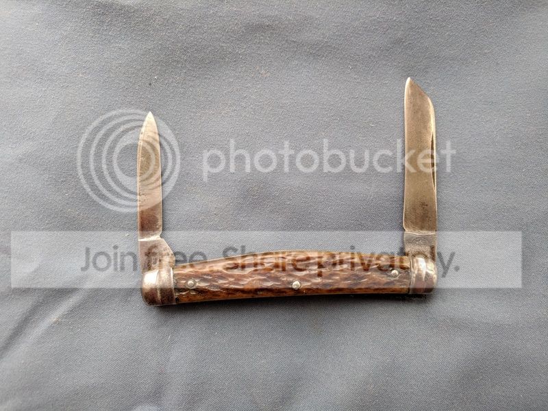 Remington Half Congress, stamp puts it around late 1920s to early 1930s. Has been used, has been sharpened, looks to have been cleaned sometime in its past, blades are still full though, has good snap on both blades. Pen blade has a half stop. Nicely jigged bone. One of my best ever antique store finds. $75 shipped NOW $65