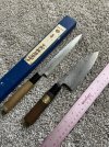 Here I have a Yaningba and a Deba. Both right handed San mai construction single bevels. Both have been cleaned up and sharpened. Super fun knives to try out and learn with in the kitchen for a reasonable price! Take either for $50 shipped or both for $90! PPFF or Venmo please.