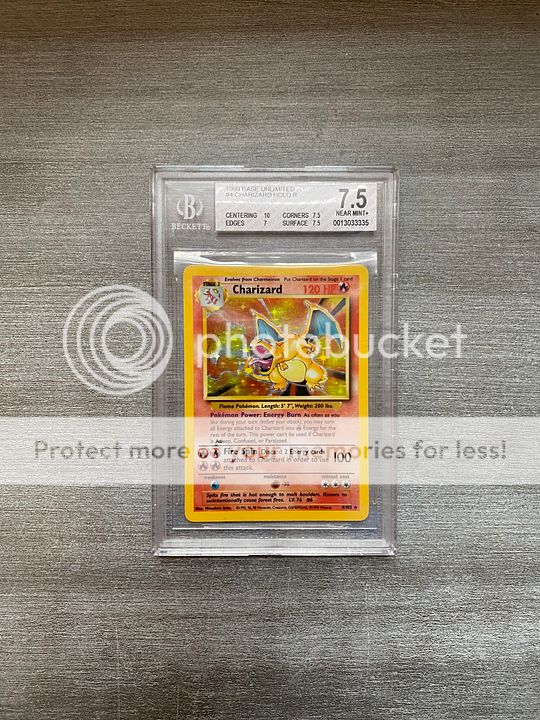 Charizard – 1999 base unlimited #4 Holo R Graded Beckett 7.5 with perfect 10 centering! -$500