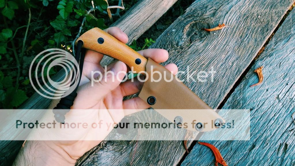 Comes with kydex sheath spaced for large tek lok (1.5 inch spacing)