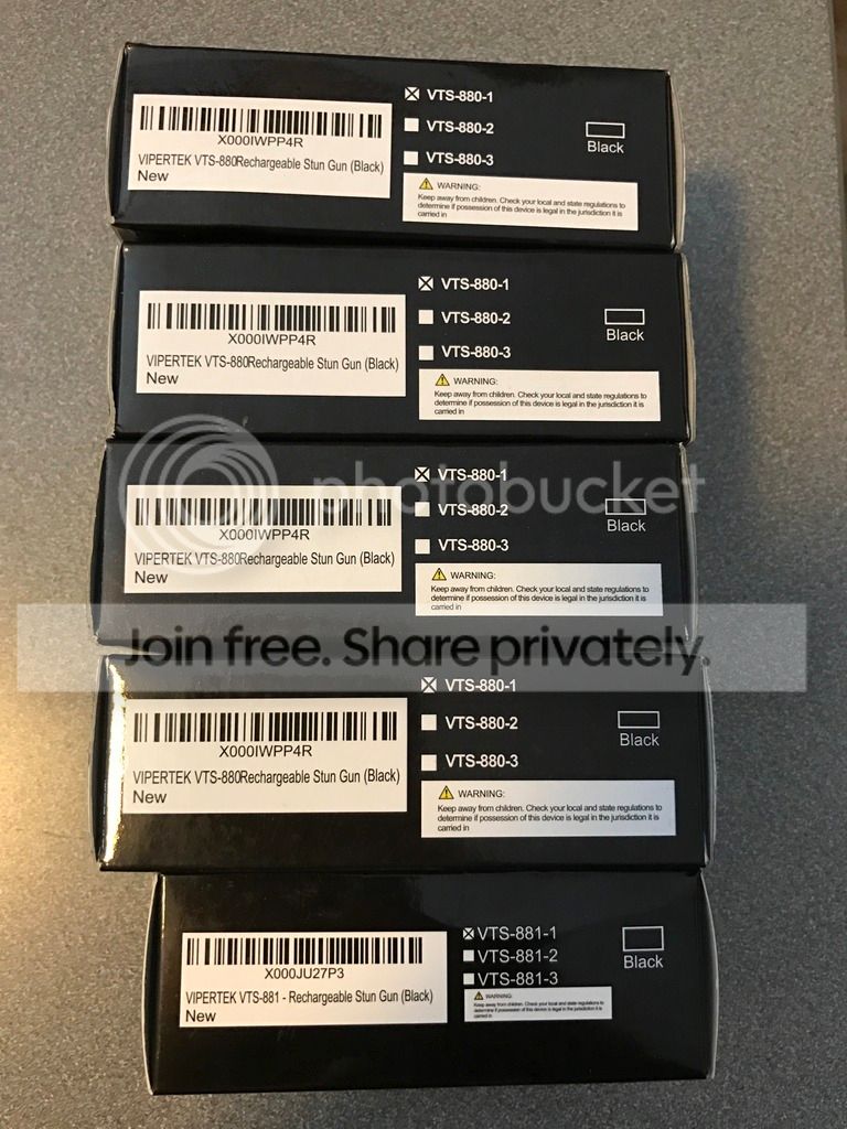 I have for sale (1) five Vipertek VTS 881 MINI Re-chargeable Stun Guns. Specs are quoted at 38,000,000 volts