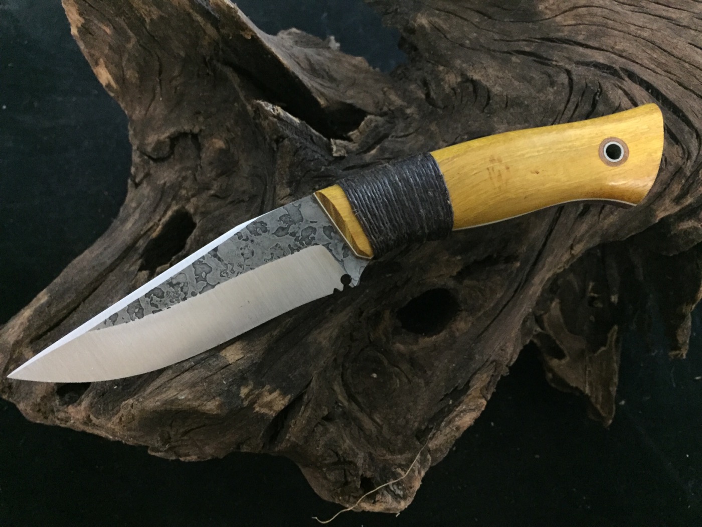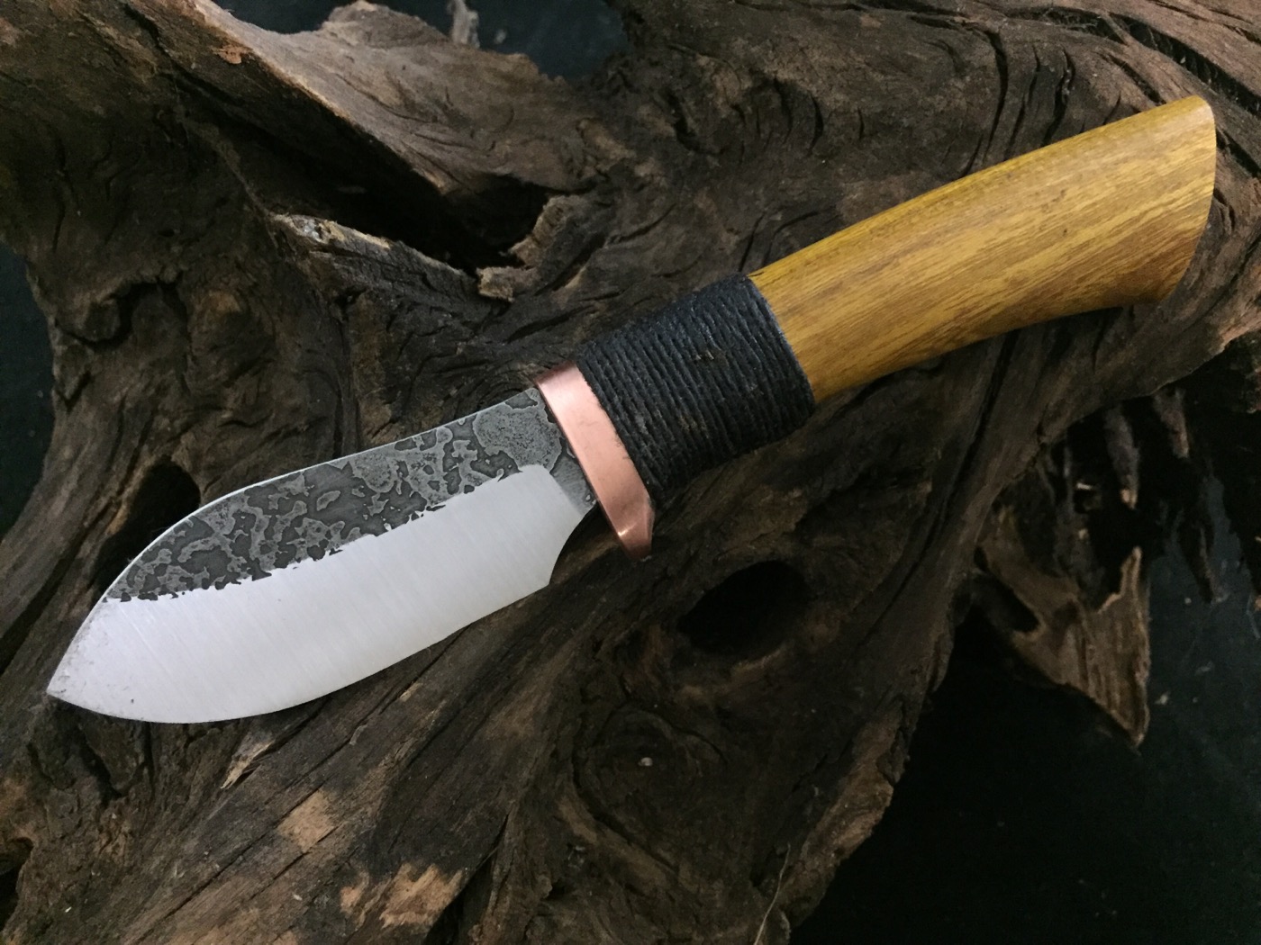 Rustamuk with copper guard, osage, and hemp wrap flat ground on 1/8 A2 Hidden tang $275