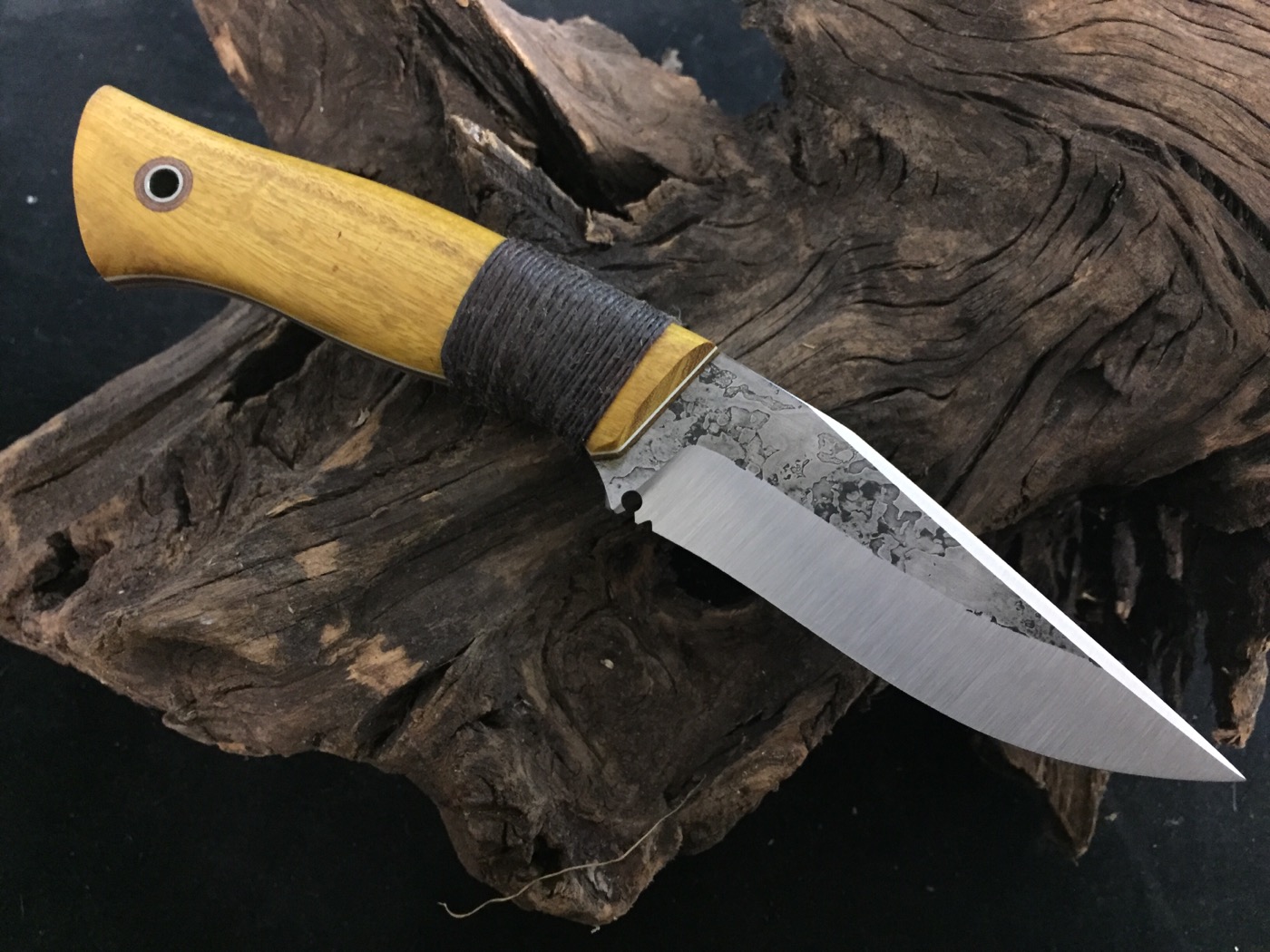 Hosted on FotkiRustamuk with copper guard, osage, and hemp wrap flat ground on 1/8 A2 Hidden tang $275