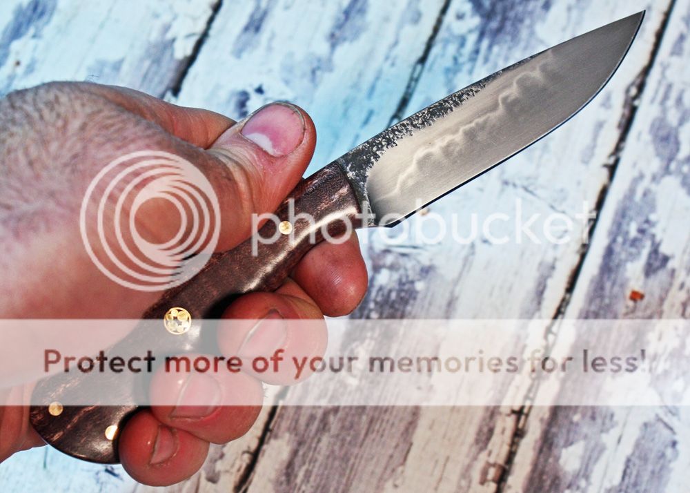 I had some W1 in round stock and forged it into this knife. I clay coated the blade for a nice hamon. It has been hand polished to 2000 grit and etched to bring out the details. it is forged thin and is razor sharp.