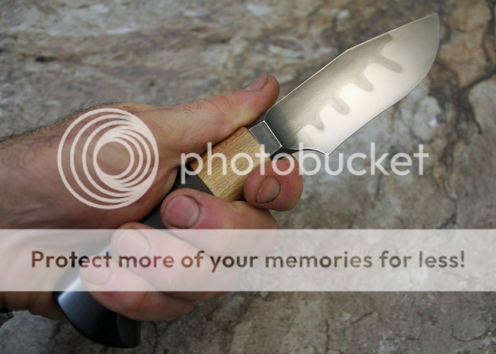 I forged this out of W1 roundbar. It has been clay quenched for a nice hamon. The blade has been hand polished to 1000 grit before etching. It is razor sharp. The tang is a through tang. It is nice and robust, and is stepped down at the butt end to allow for peening.