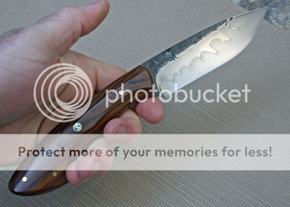 The handle is a bit of a different design for me, but I like how it worked out. It really fits the hand nicely. The cocobolo has been faceted and polished to a nice luster. Everything is held in place with pins and G-flex epoxy.